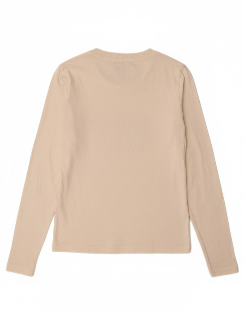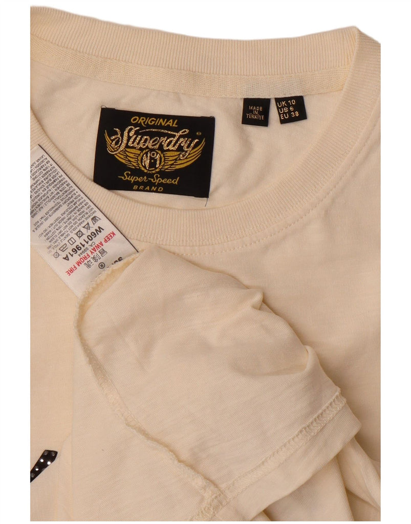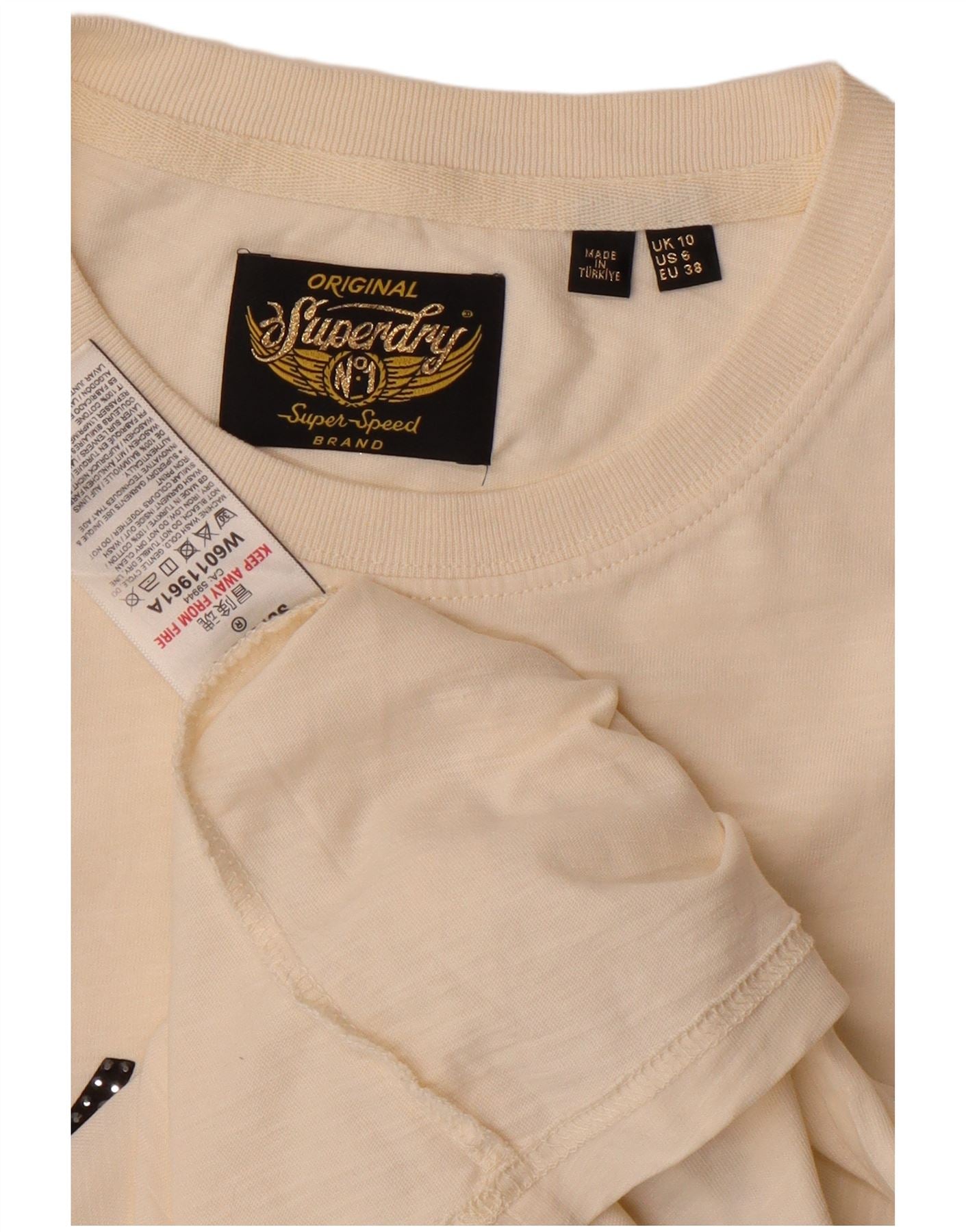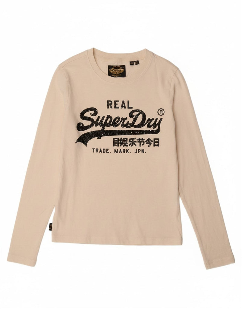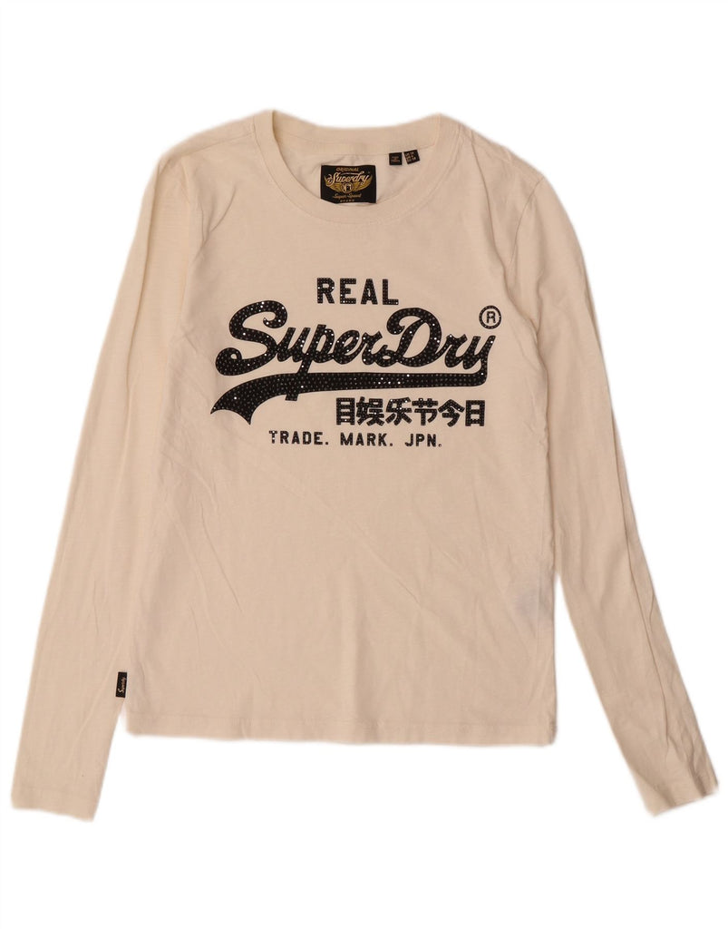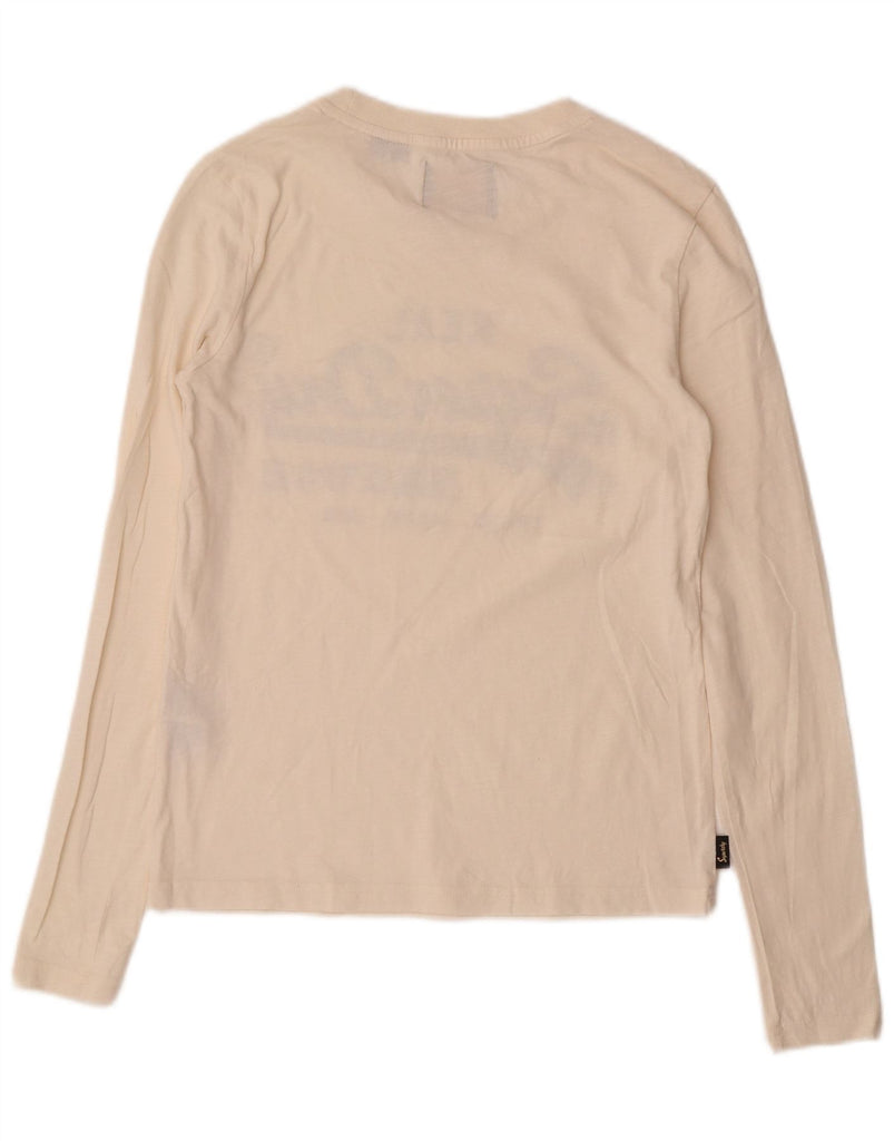 SUPERDRY Womens Graphic Top Long Sleeve UK 10 Small Off White Cotton
