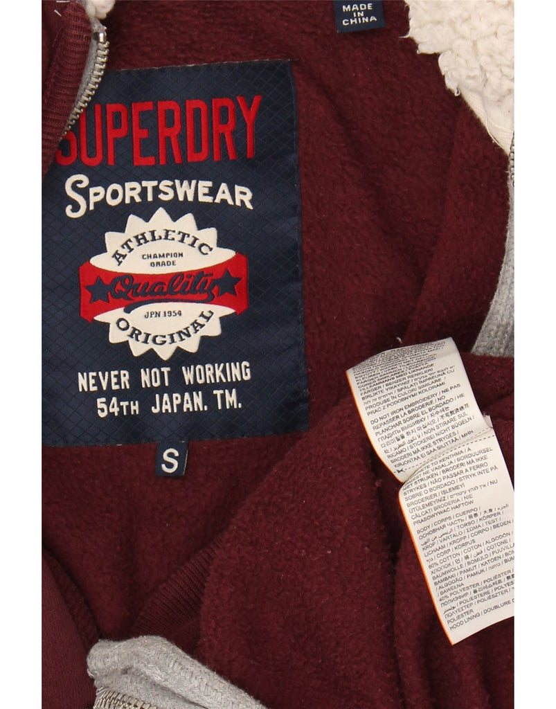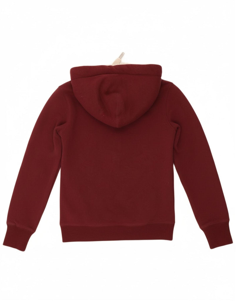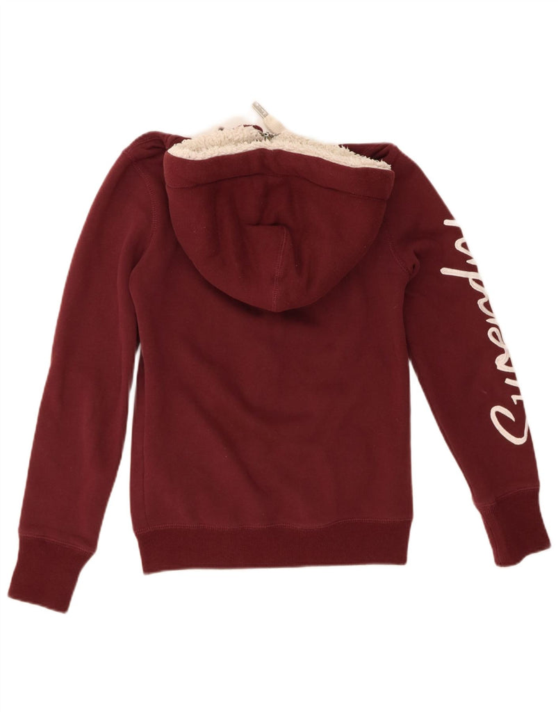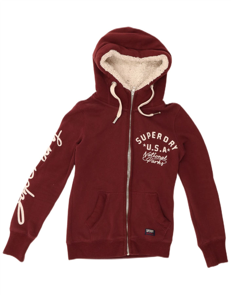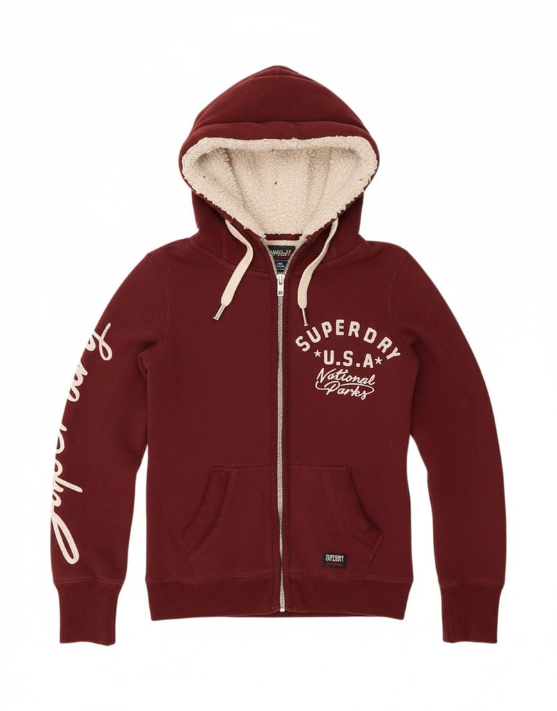SUPERDRY Womens Graphic Zip Hoodie Sweater UK 10 Small Burgundy Cotton