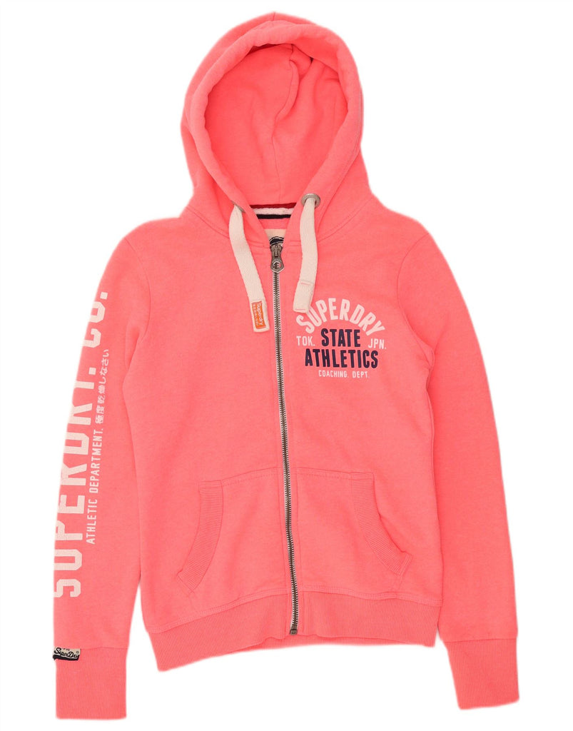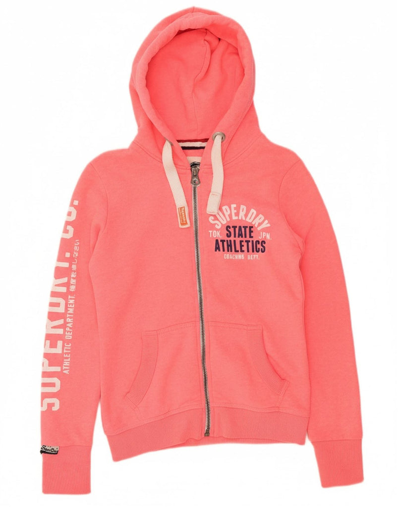 SUPERDRY Womens Graphic Zip Hoodie Sweater UK 10 Small Pink Polyester