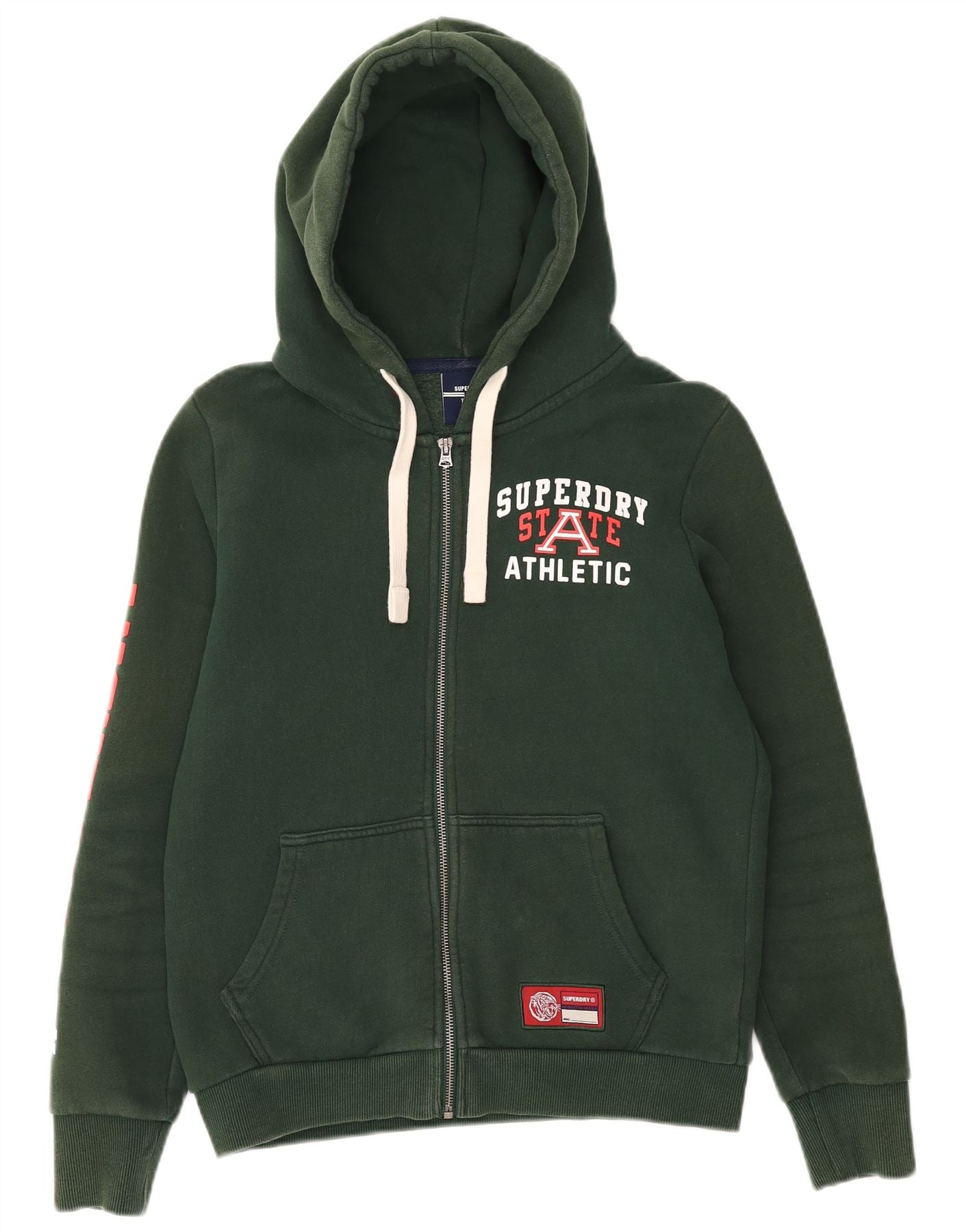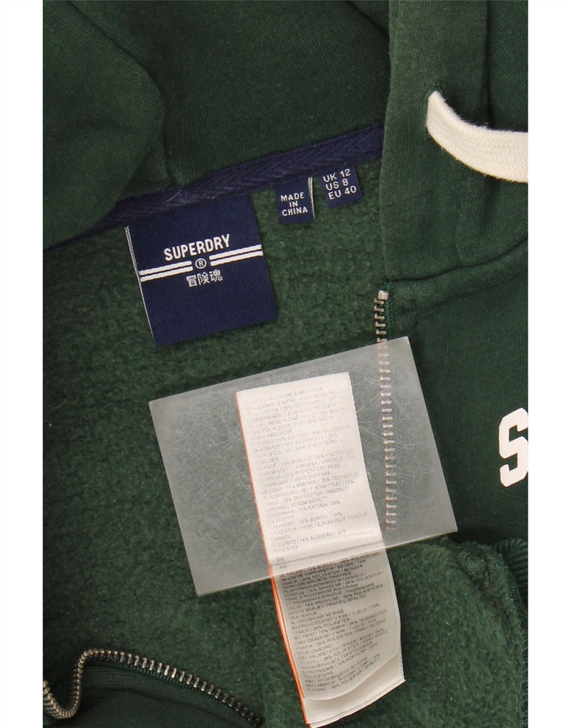 SUPERDRY Womens Graphic Zip Hoodie Sweater UK 12 Medium Green Cotton