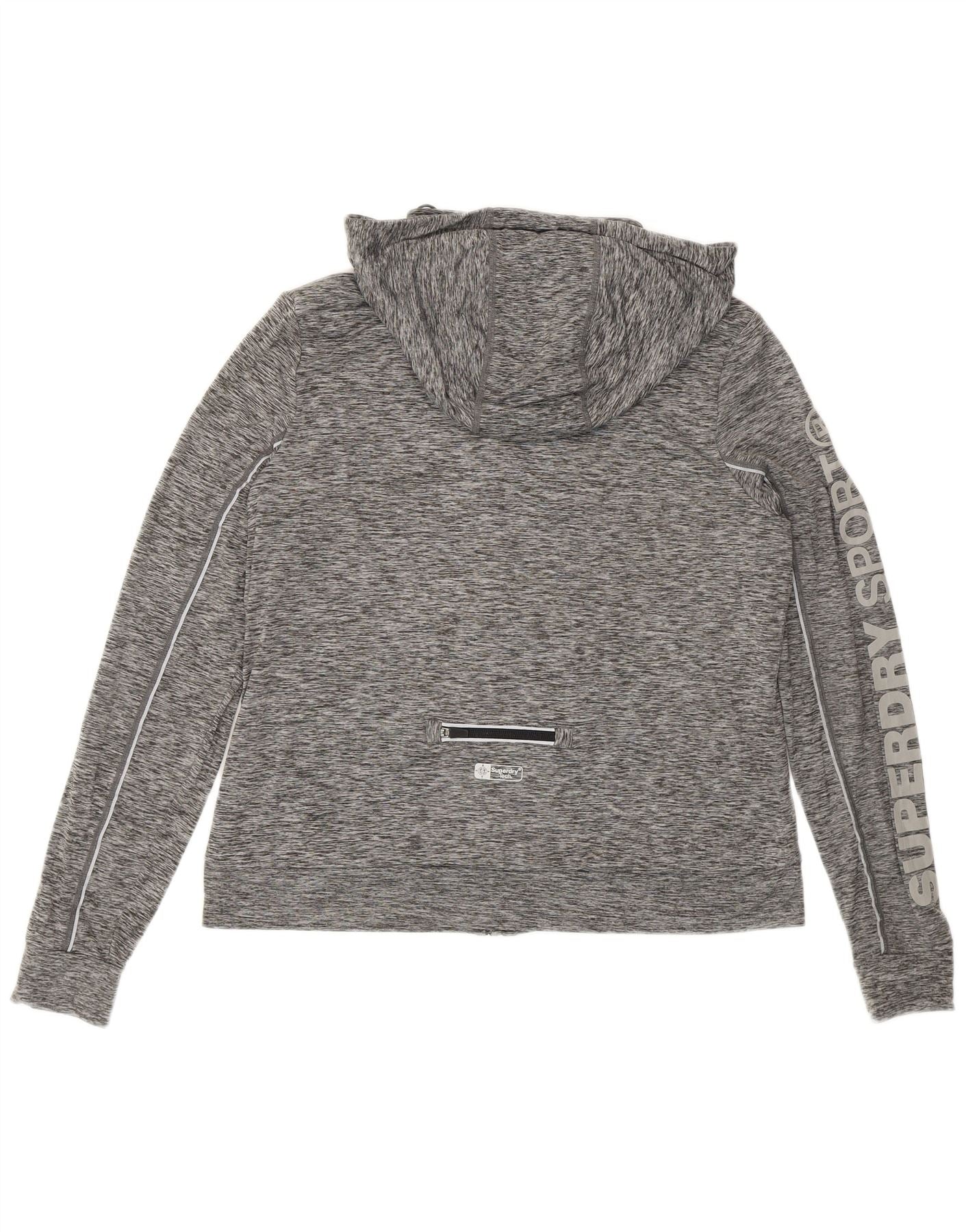 SUPERDRY Womens Graphic Zip Hoodie Sweater UK 14 Medium Grey Flecked