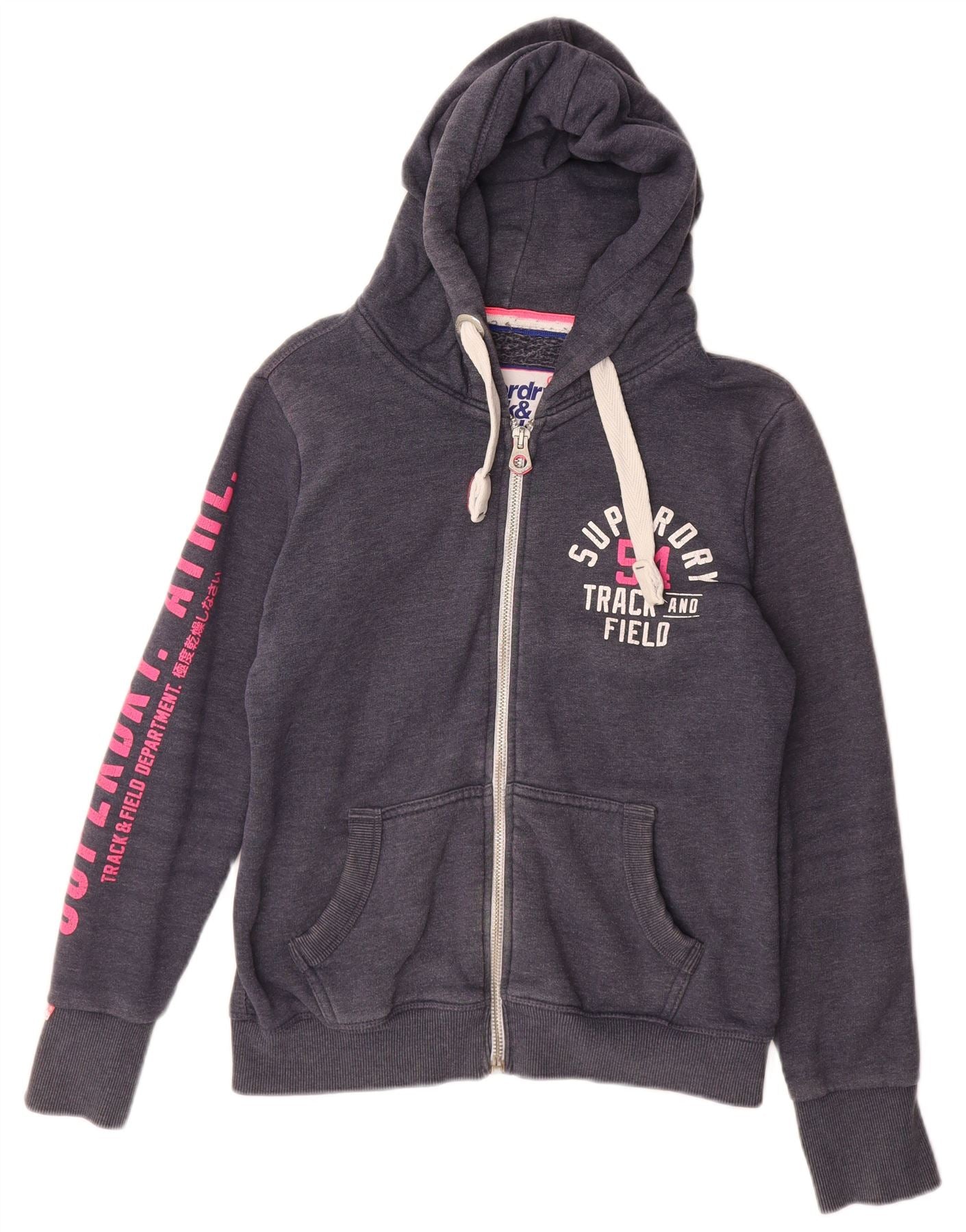 Superdry Womens Graphic Zip Hoodie Sweater UK 14 Medium Navy Blue Cotton