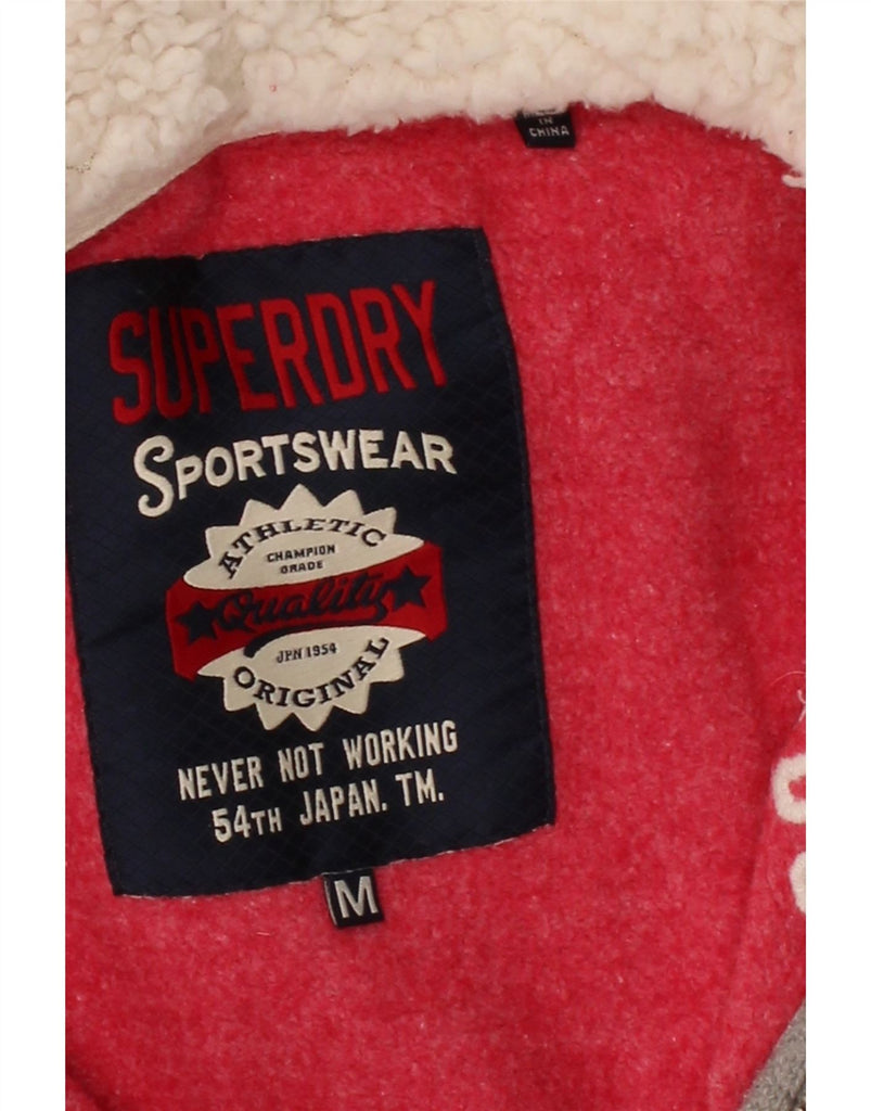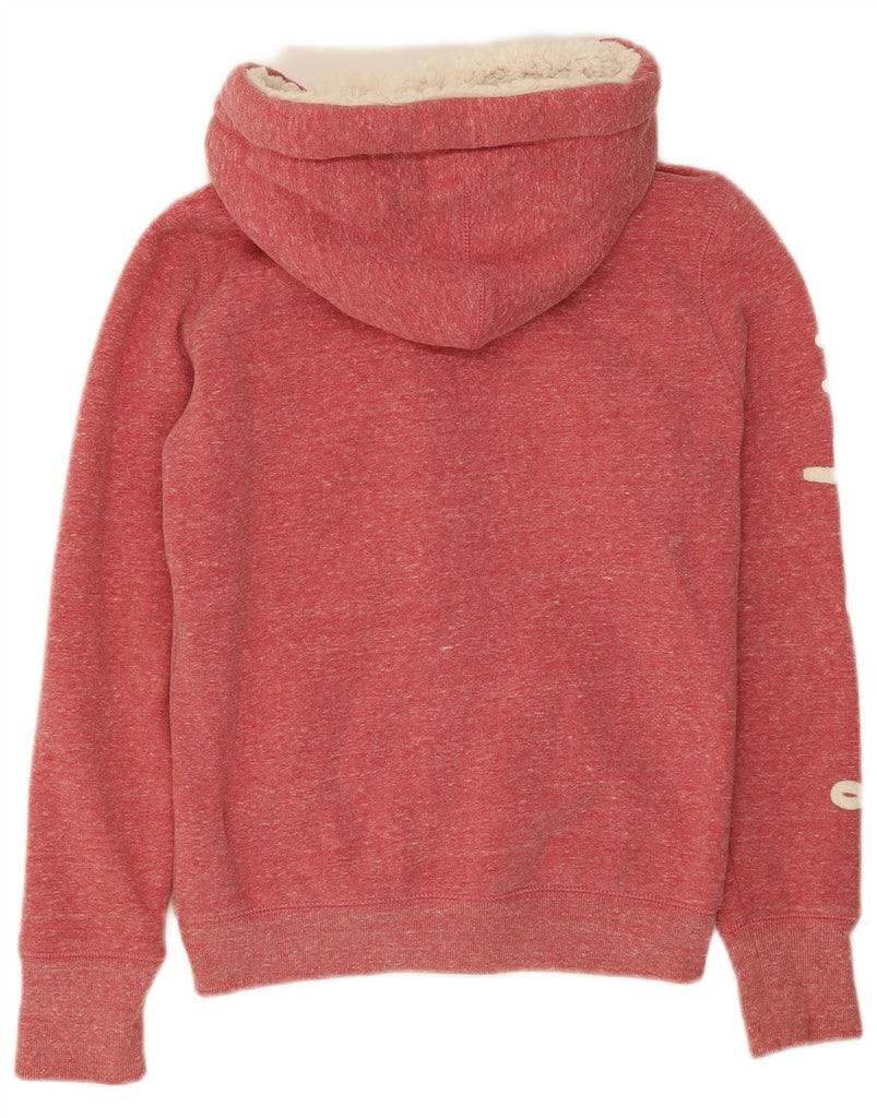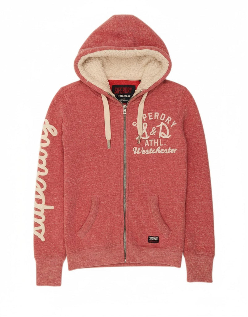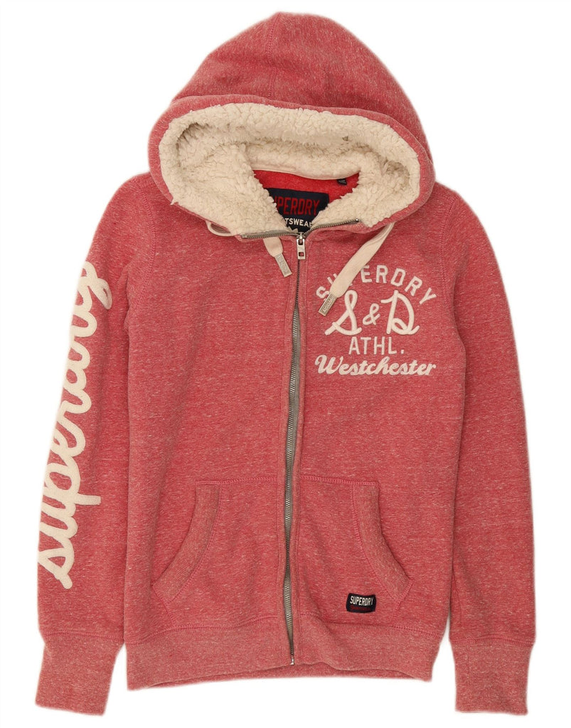 SUPERDRY Womens Graphic Zip Hoodie Sweater UK 14 Medium Pink Flecked