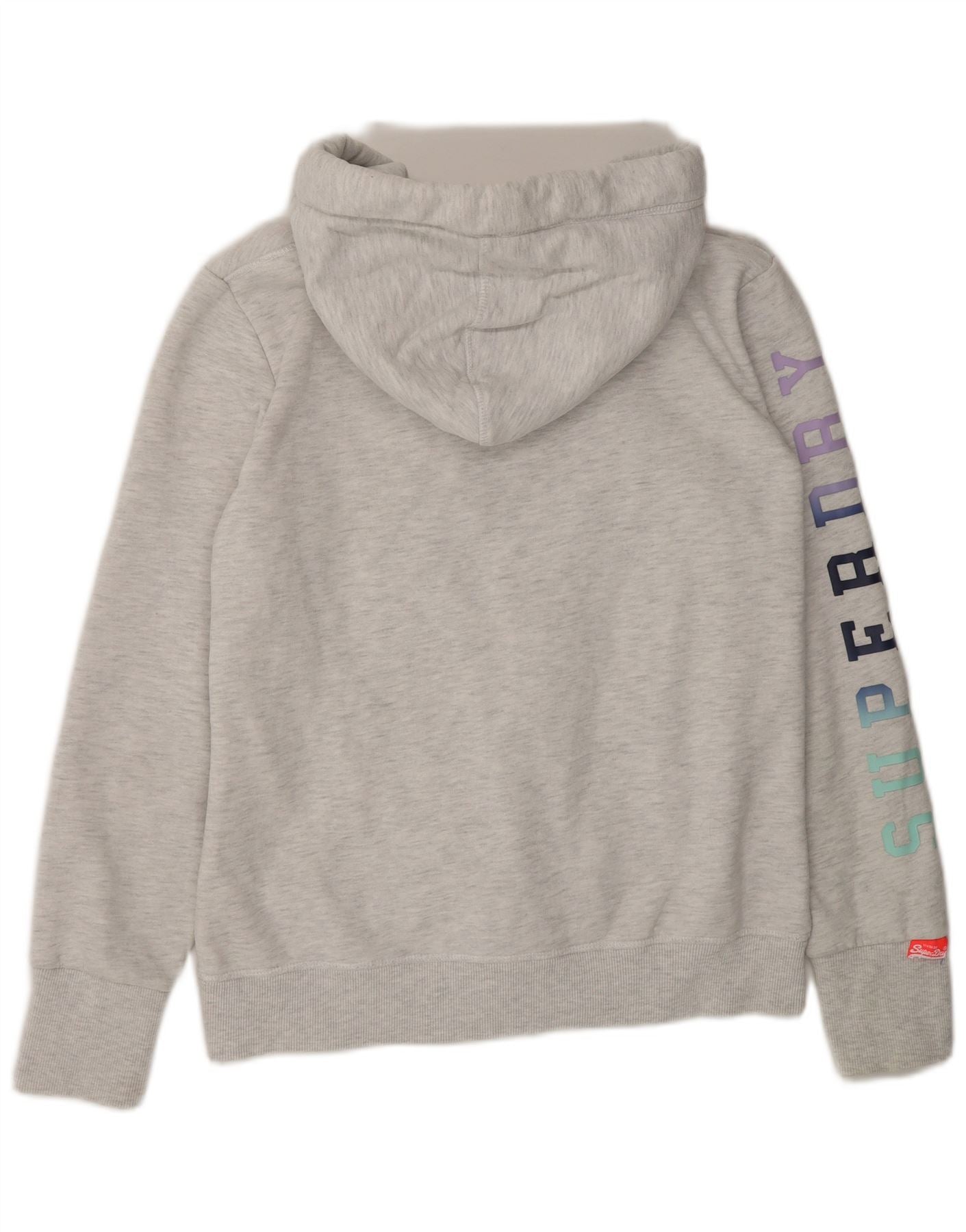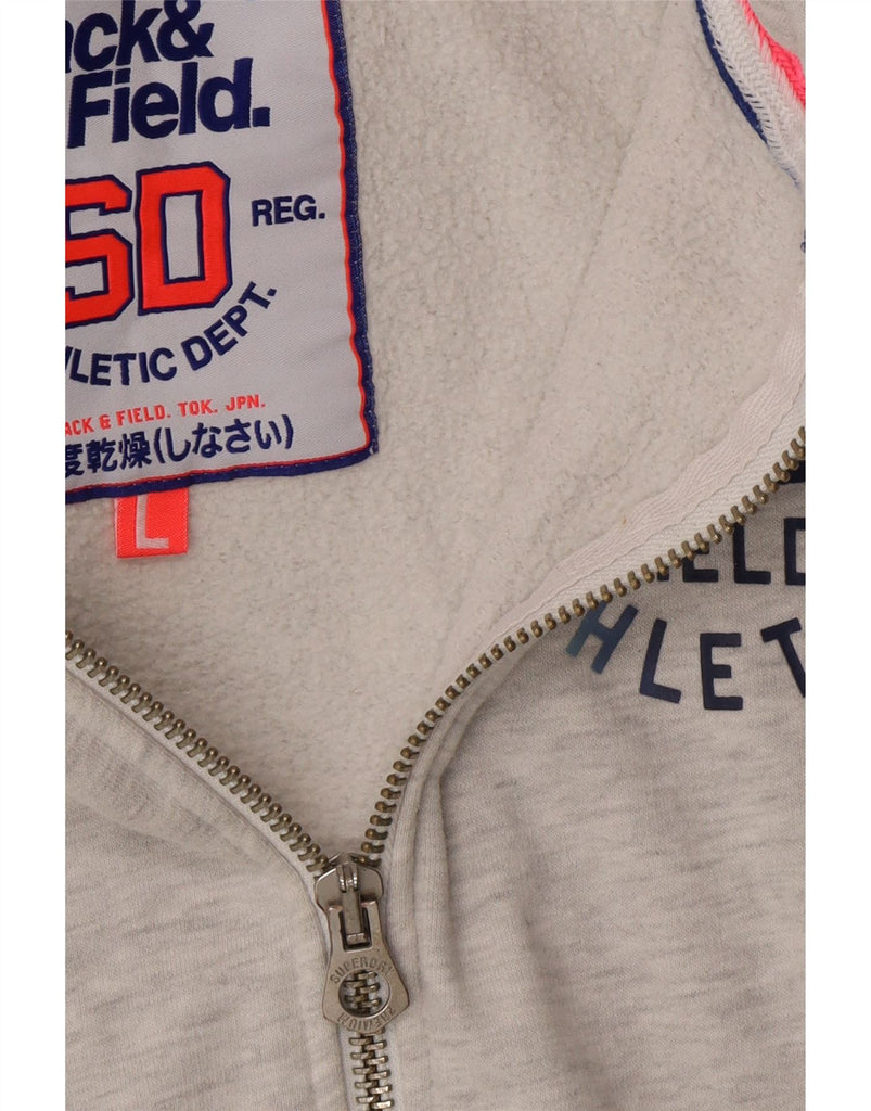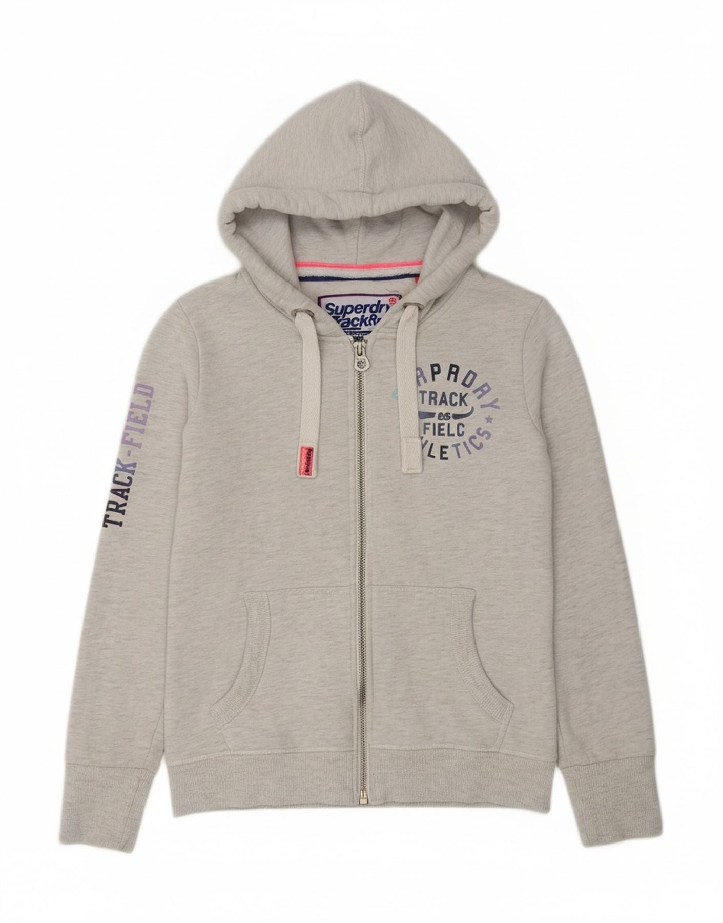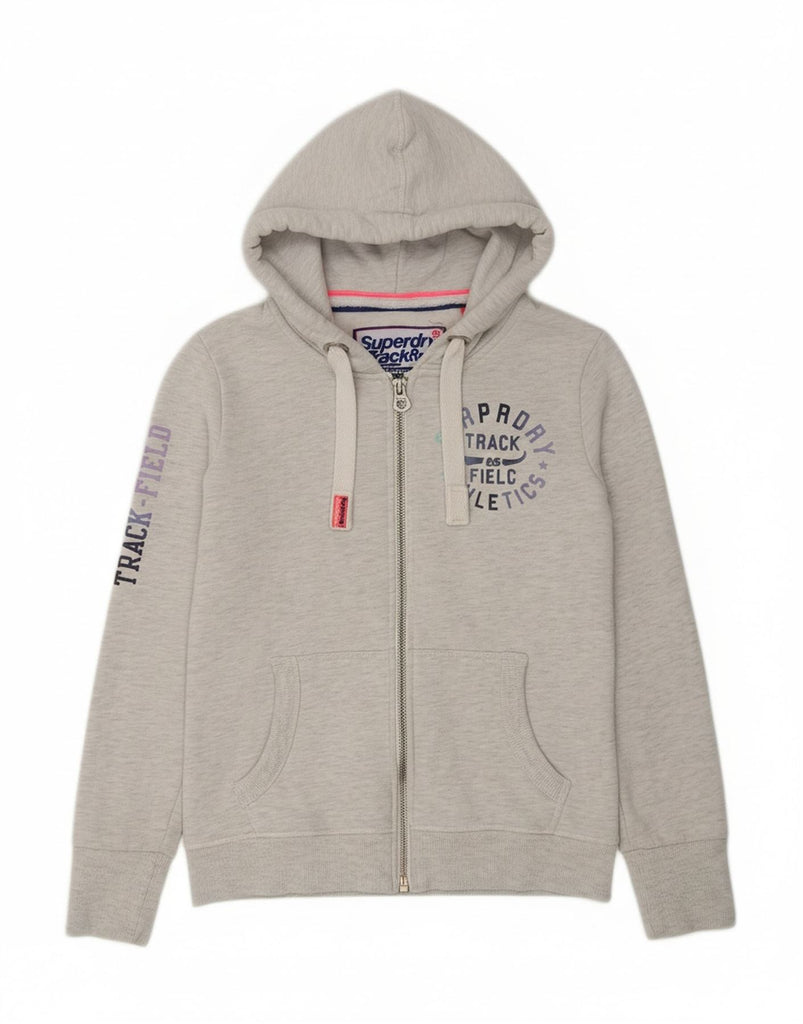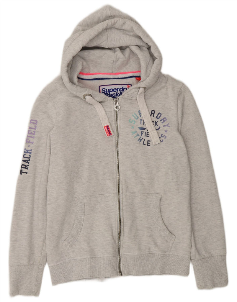SUPERDRY Womens Graphic Zip Hoodie Sweater UK 16 Large Grey Cotton