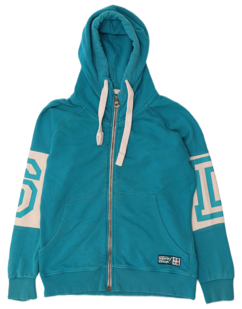 SUPERDRY Womens Graphic Zip Hoodie Sweater UK 18 XL Blue Cotton