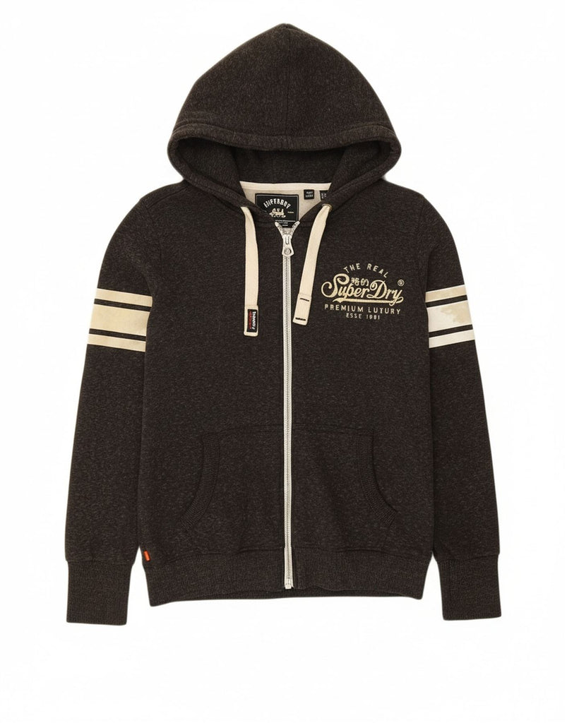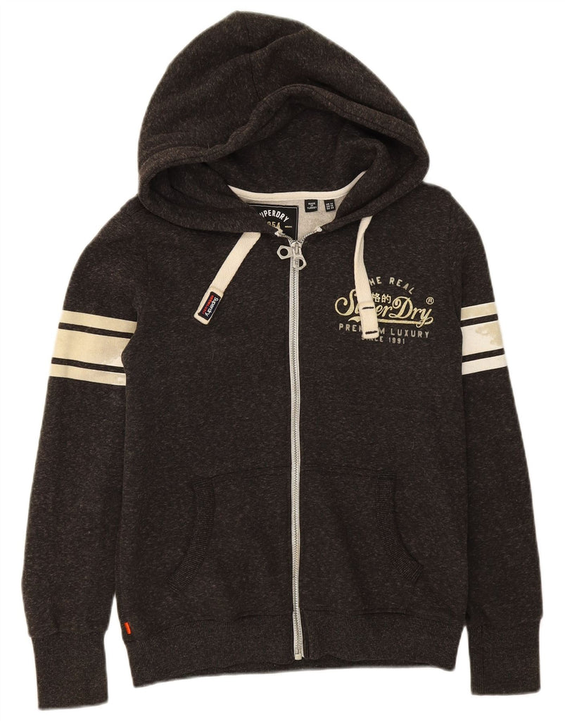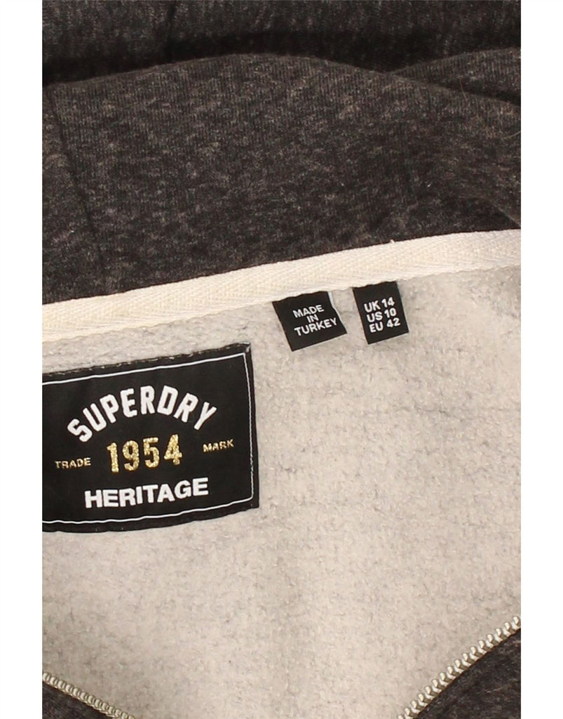 SUPERDRY Womens Heritage Zip Hoodie Sweater UK 14 Large Grey Colourblock