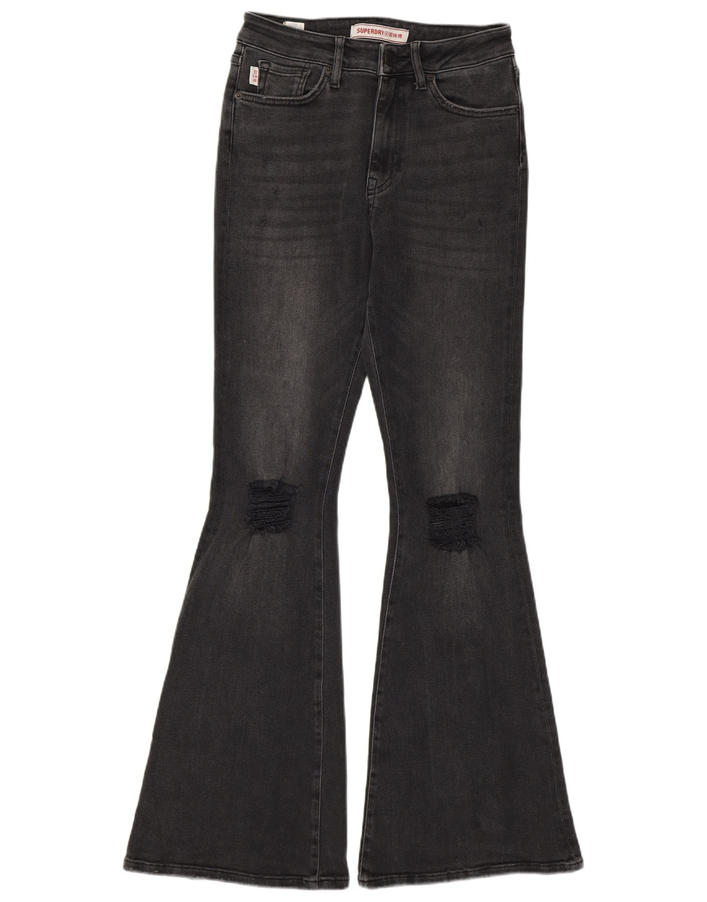 SUPERDRY Womens High Rise Distressed Flared Jeans W28 L33 Grey Cotton
