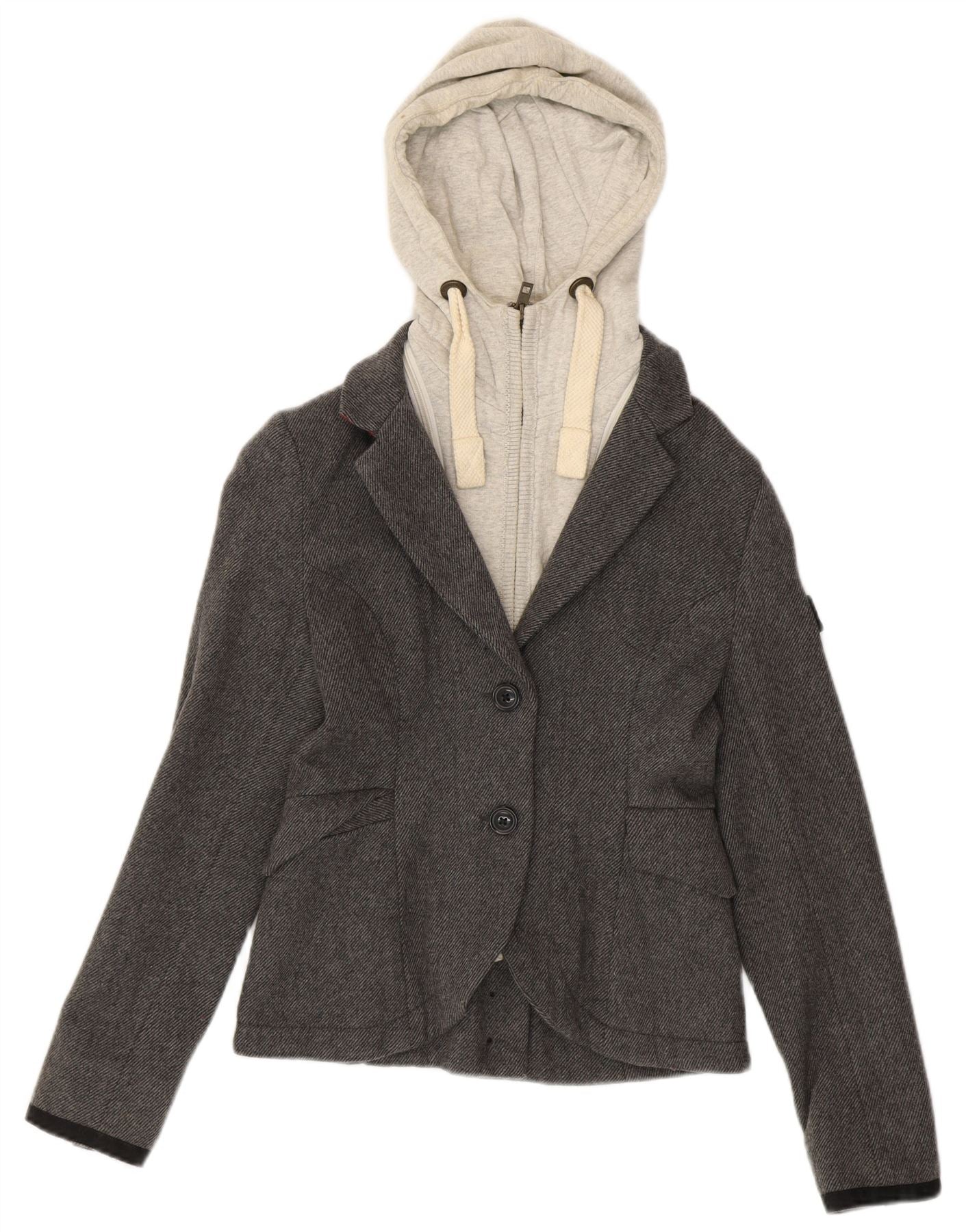 SUPERDRY Womens Hooded 2 Button Blazer Jacket UK 6 XS Grey Wool