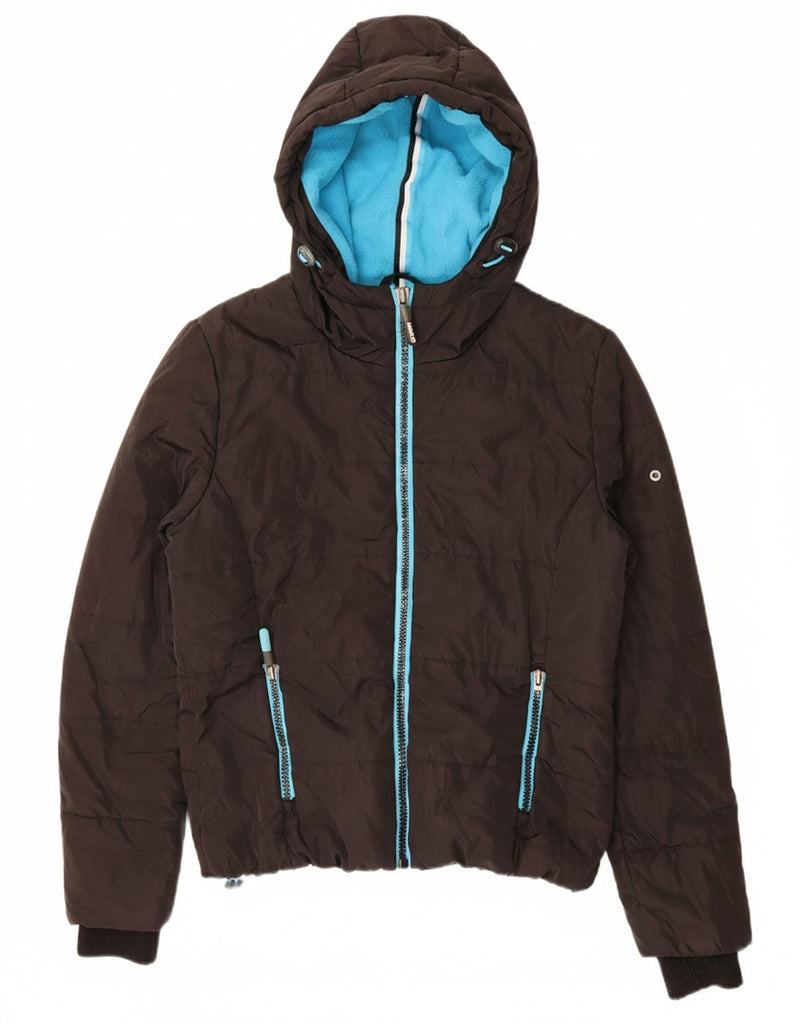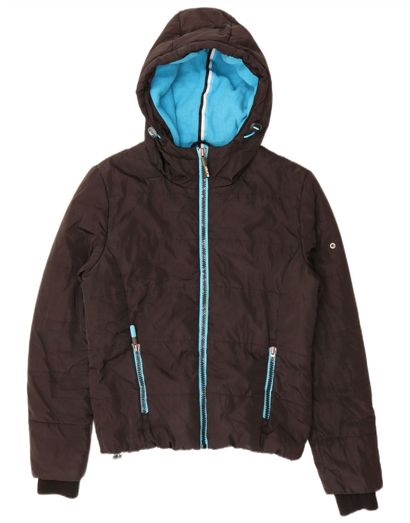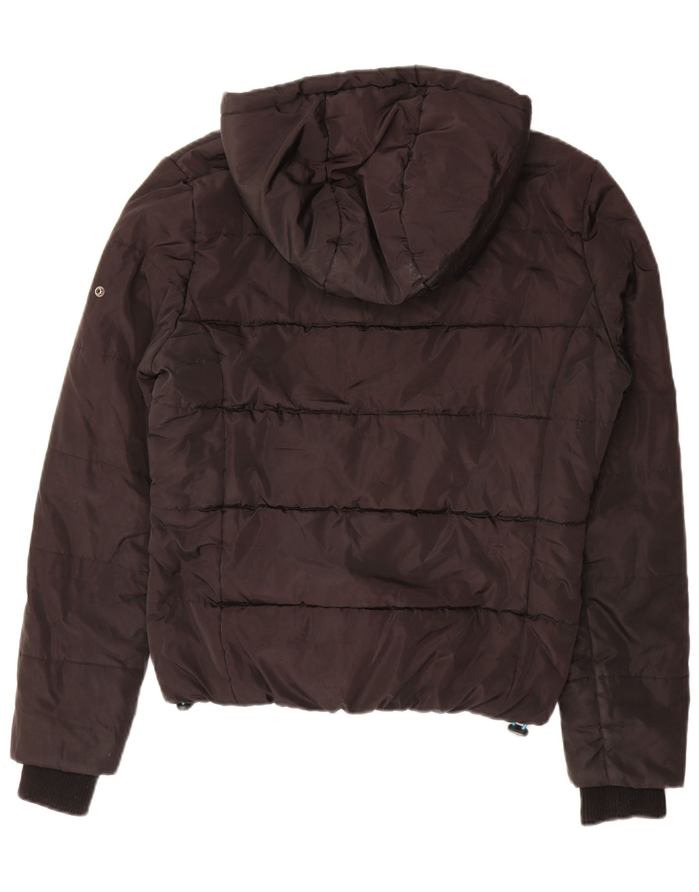 SUPERDRY Womens Hooded Bomber Padded Jacket UK 14 Medium Black Polyester
