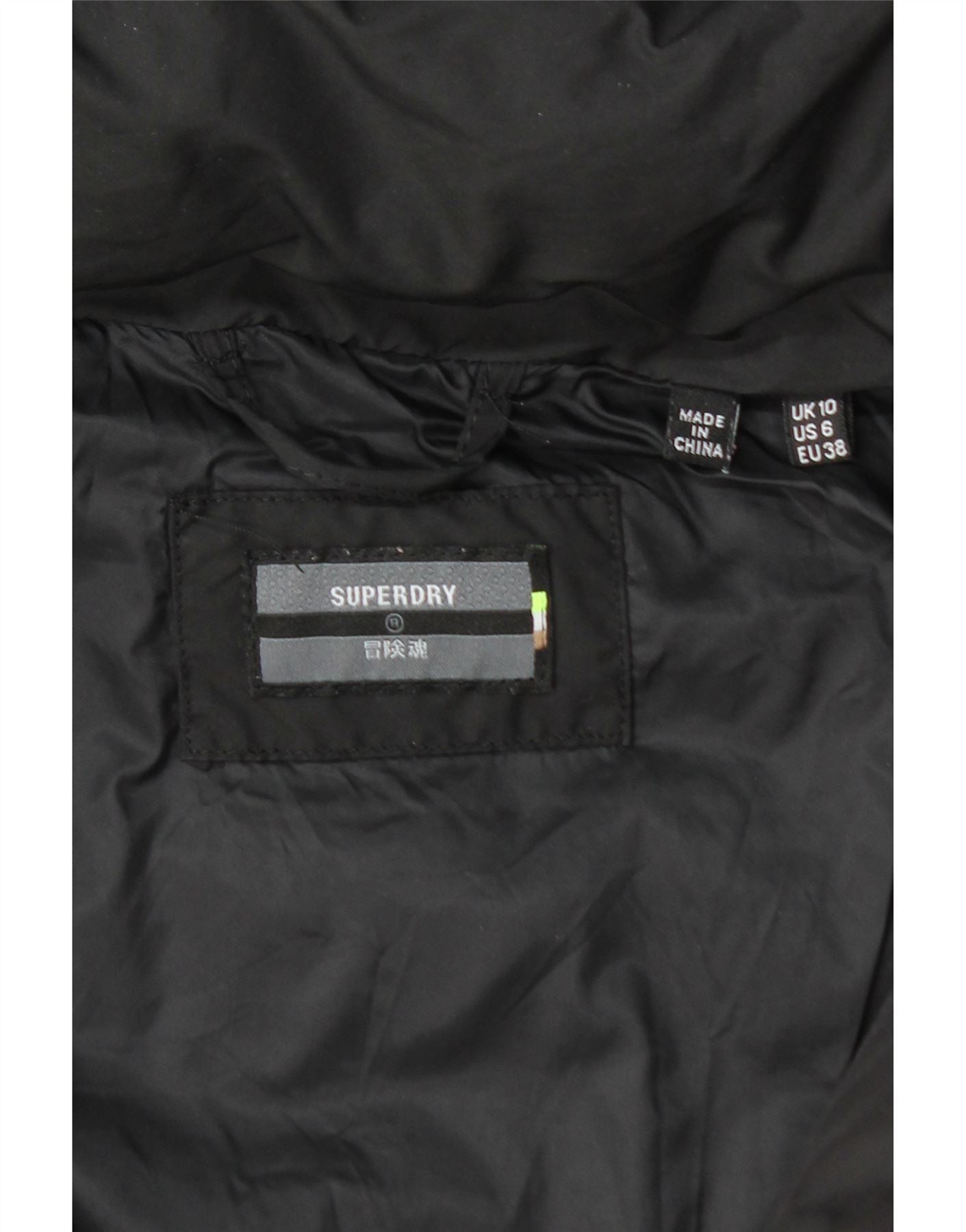 SUPERDRY Womens Hooded Padded Coat UK 10 Small Black Polyester