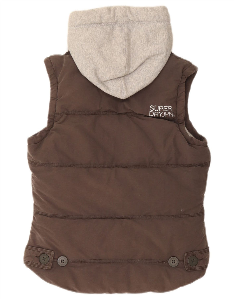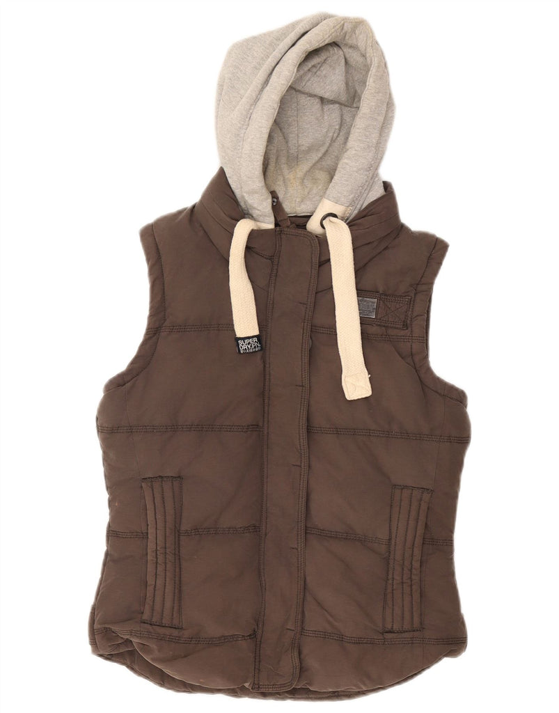 SUPERDRY Womens Hooded Padded Gilet UK 12 Medium Brown Colourblock Cotton