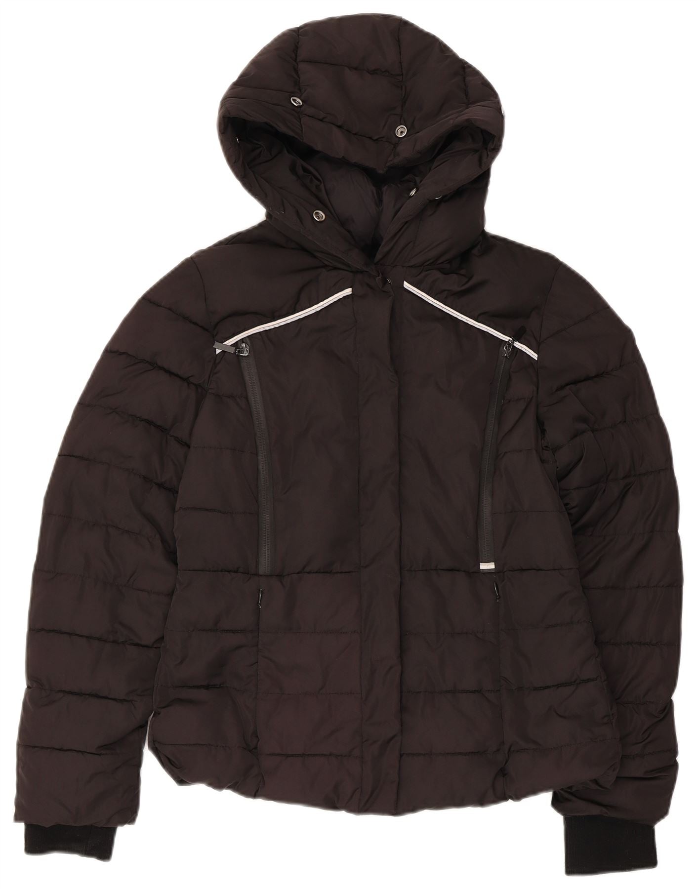 SUPERDRY Womens Hooded Padded Jacket UK 10 Small Black Polyester