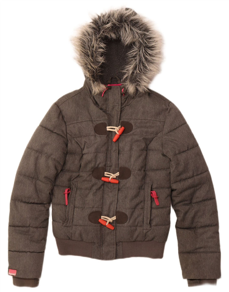 SUPERDRY Womens Hooded Padded Jacket UK 10 Small Grey Polyester