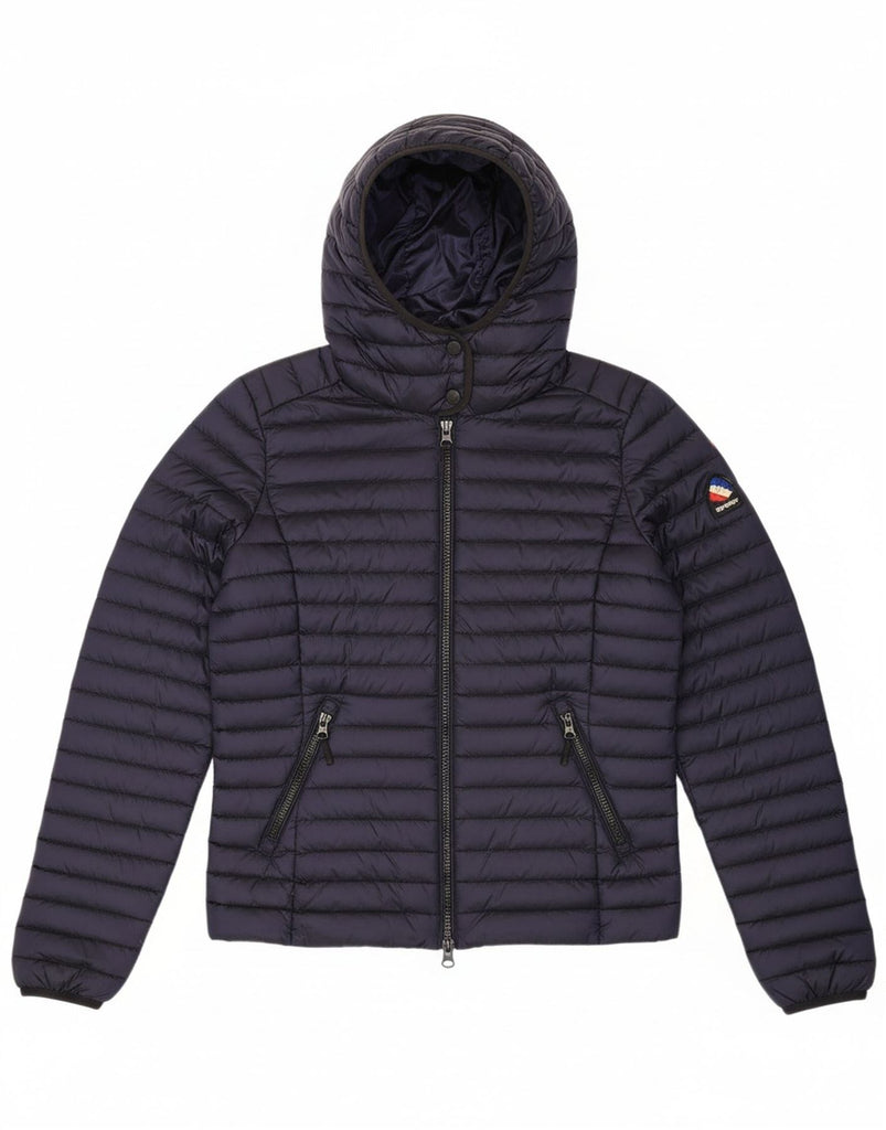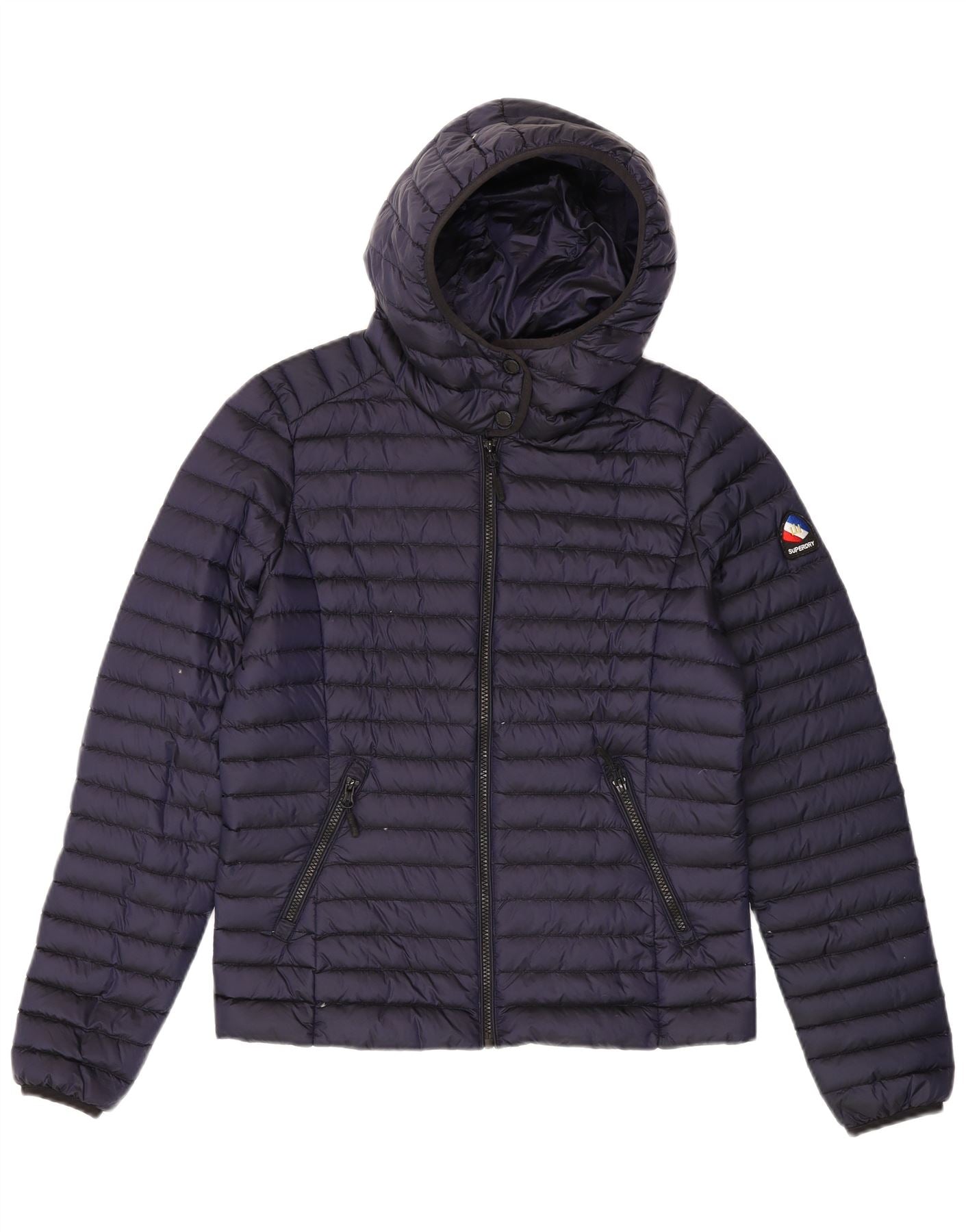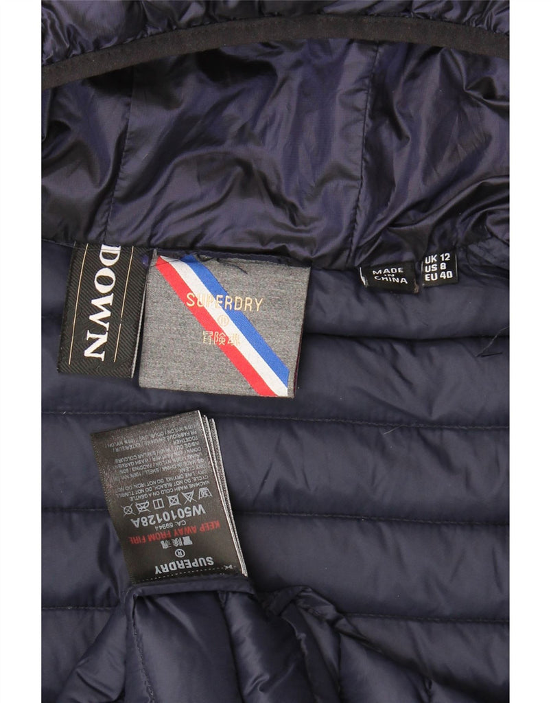 SUPERDRY Womens Hooded Padded Jacket UK 12 Medium Navy Blue Nylon Winter