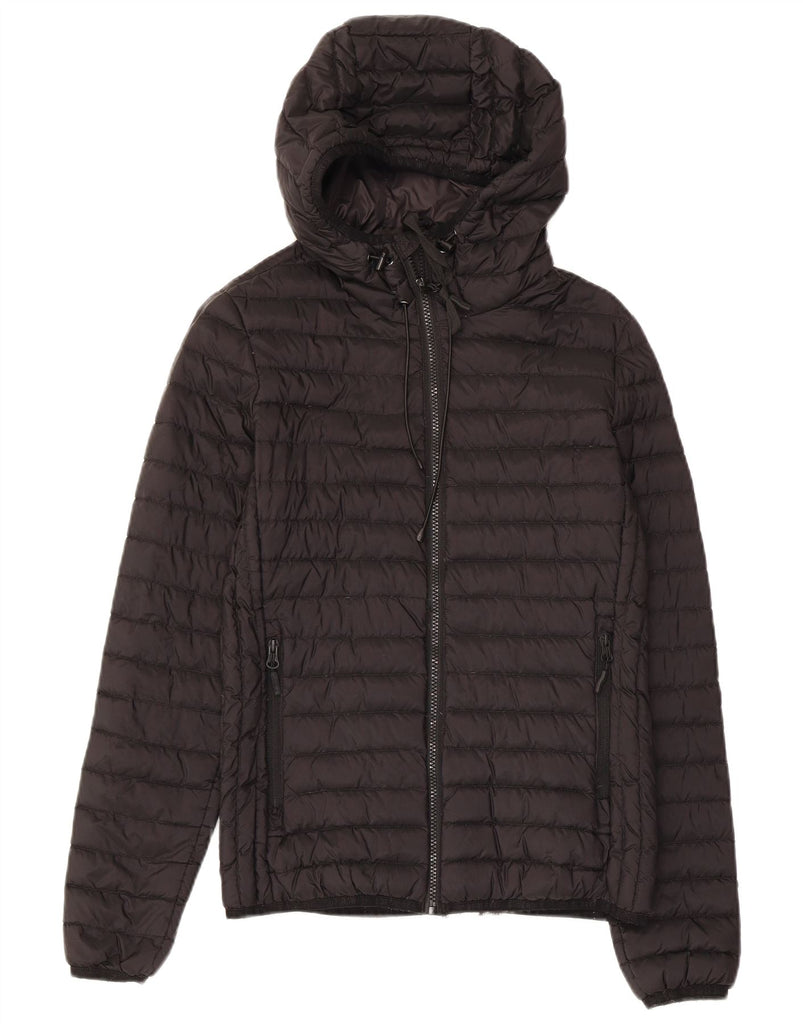 SUPERDRY Womens Hooded Padded Jacket UK 8 Small Black Nylon