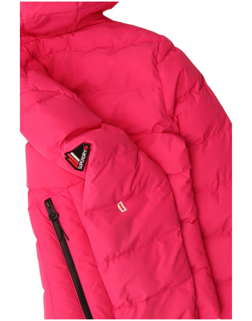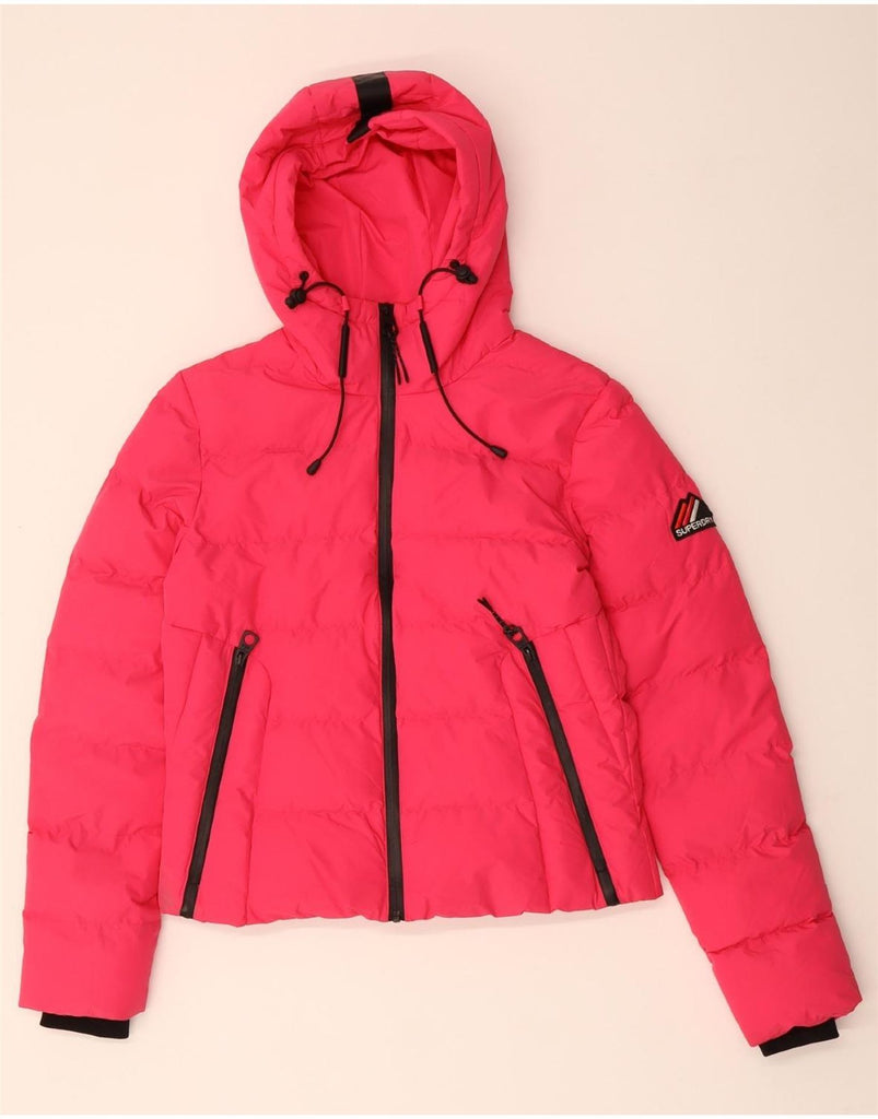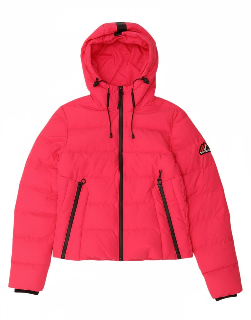 SUPERDRY Womens Hooded Padded Jacket UK 8 Small Pink Polyester Winter
