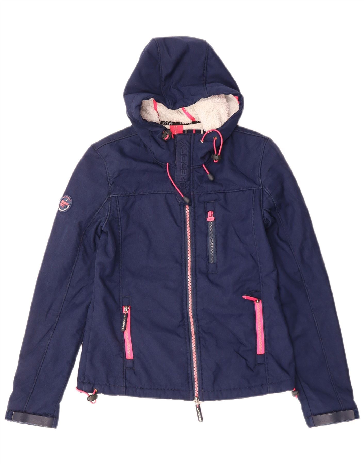 Superdry Womens Hooded Windbreaker Jacket UK 6 XS Navy Blue Polyester