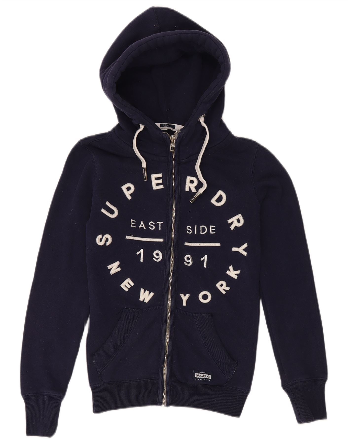 SUPERDRY Womens Manhattan Graphic Zip Hoodie Sweater UK 6 XS Navy Blue
