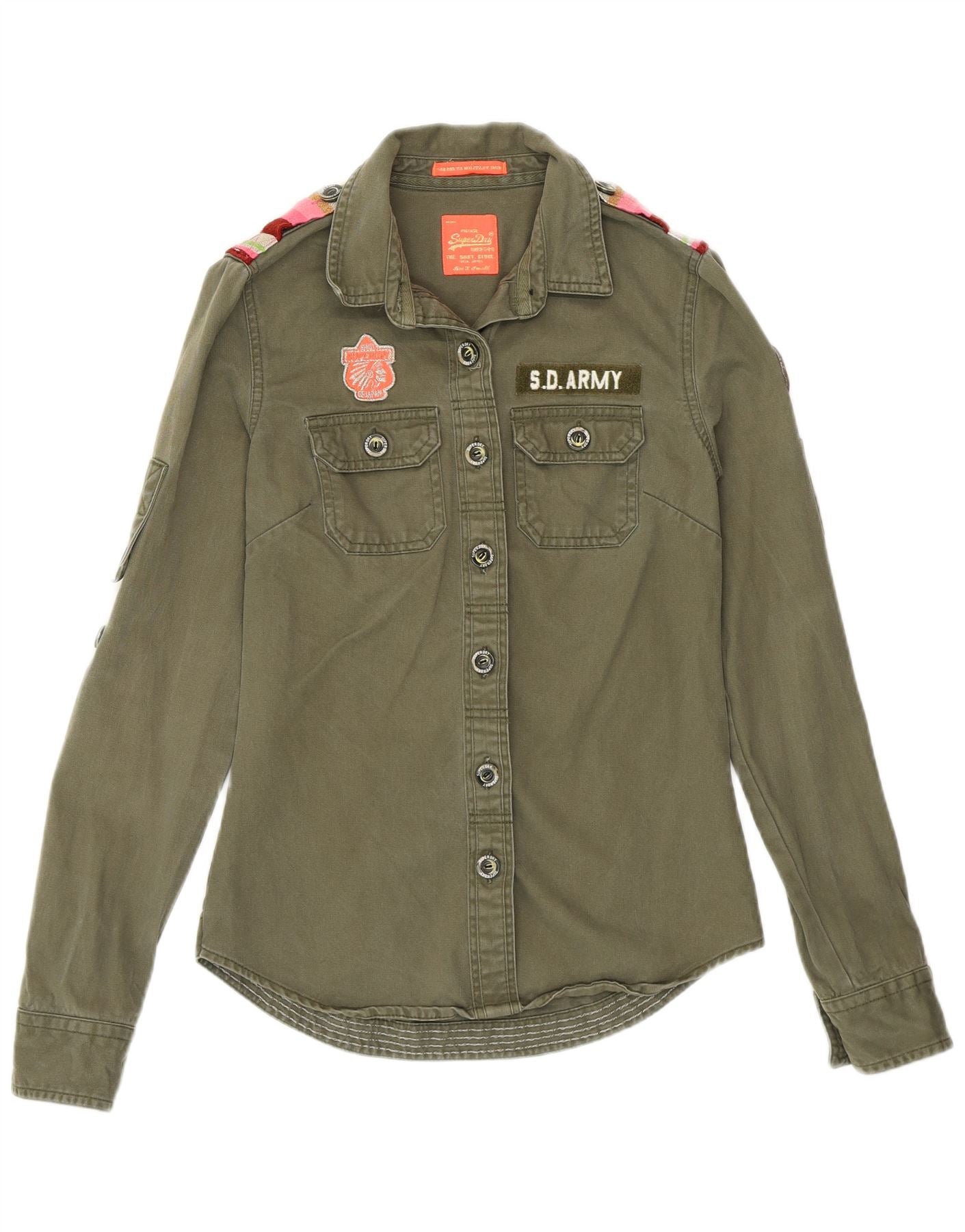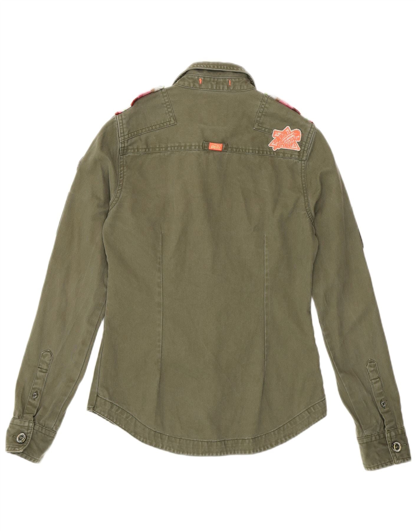 SUPERDRY Womens Military Denim Shirt UK 6 XS Khaki Cotton