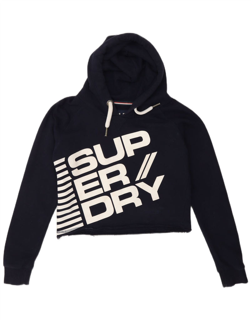SUPERDRY Womens Oversized Crop Graphic Hoodie Jumper UK 10 Small Navy Blue