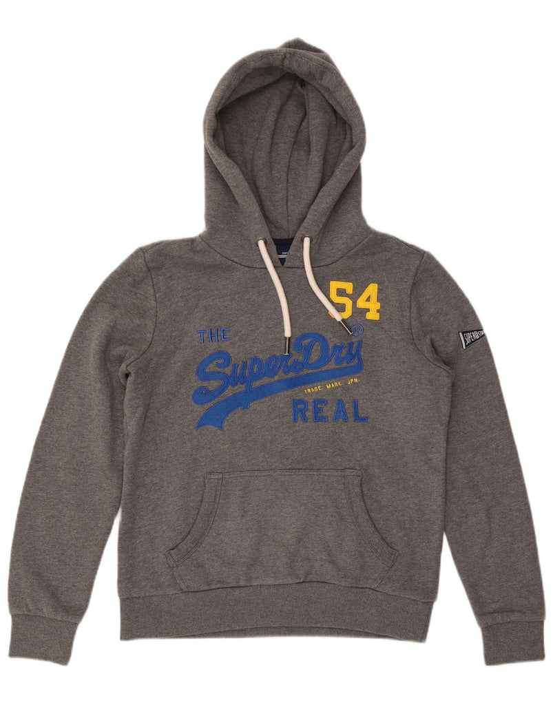 SUPERDRY Womens Oversized Graphic Hoodie Jumper UK 10 Small Grey Cotton