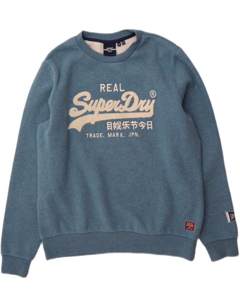 SUPERDRY Womens Oversized Graphic Sweatshirt Jumper UK 12 Medium Blue