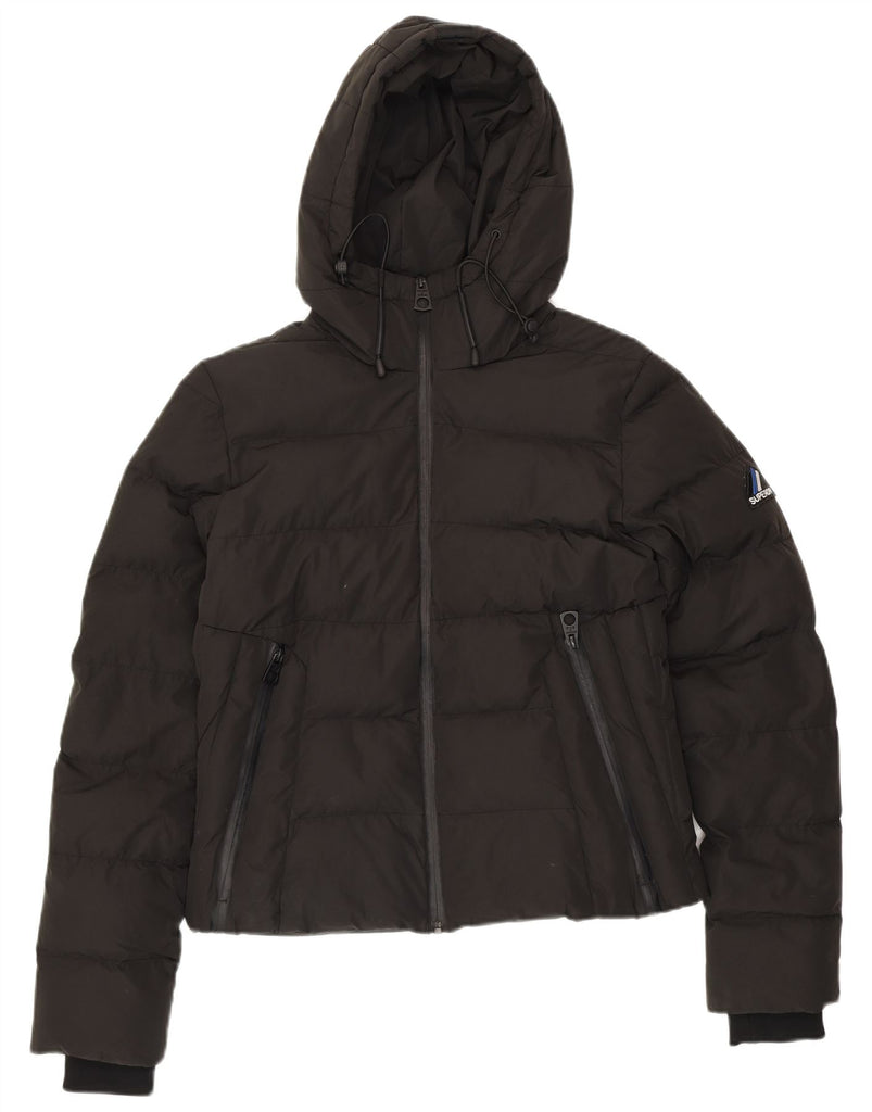 SUPERDRY Womens Oversized Hooded Padded Jacket UK 8 Small Black Polyester