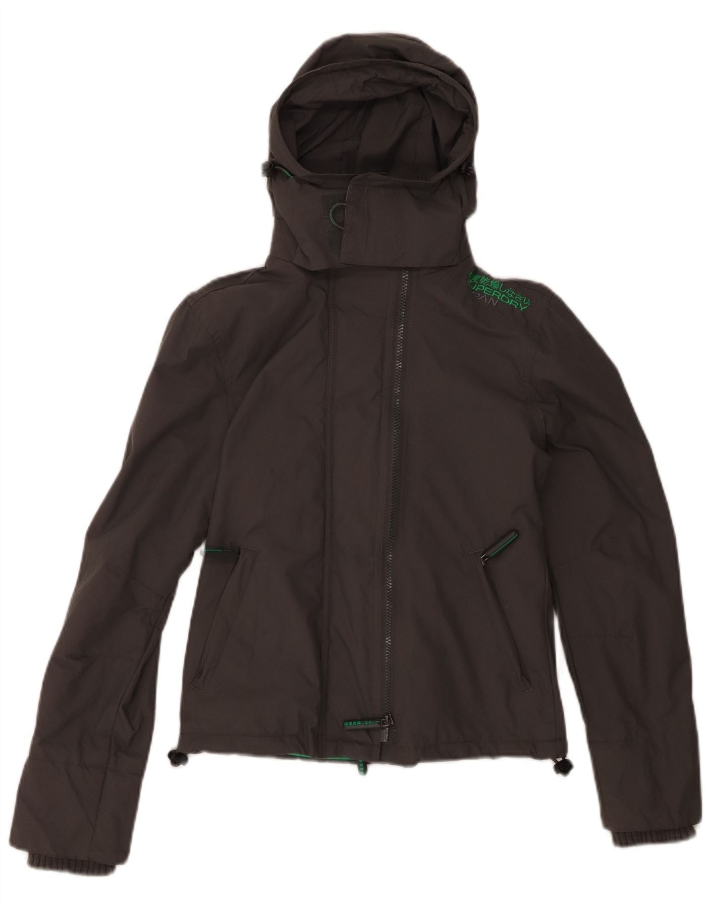 SUPERDRY Womens Oversized Hooded Windbreaker Jacket UK 6 XS Grey Nylon