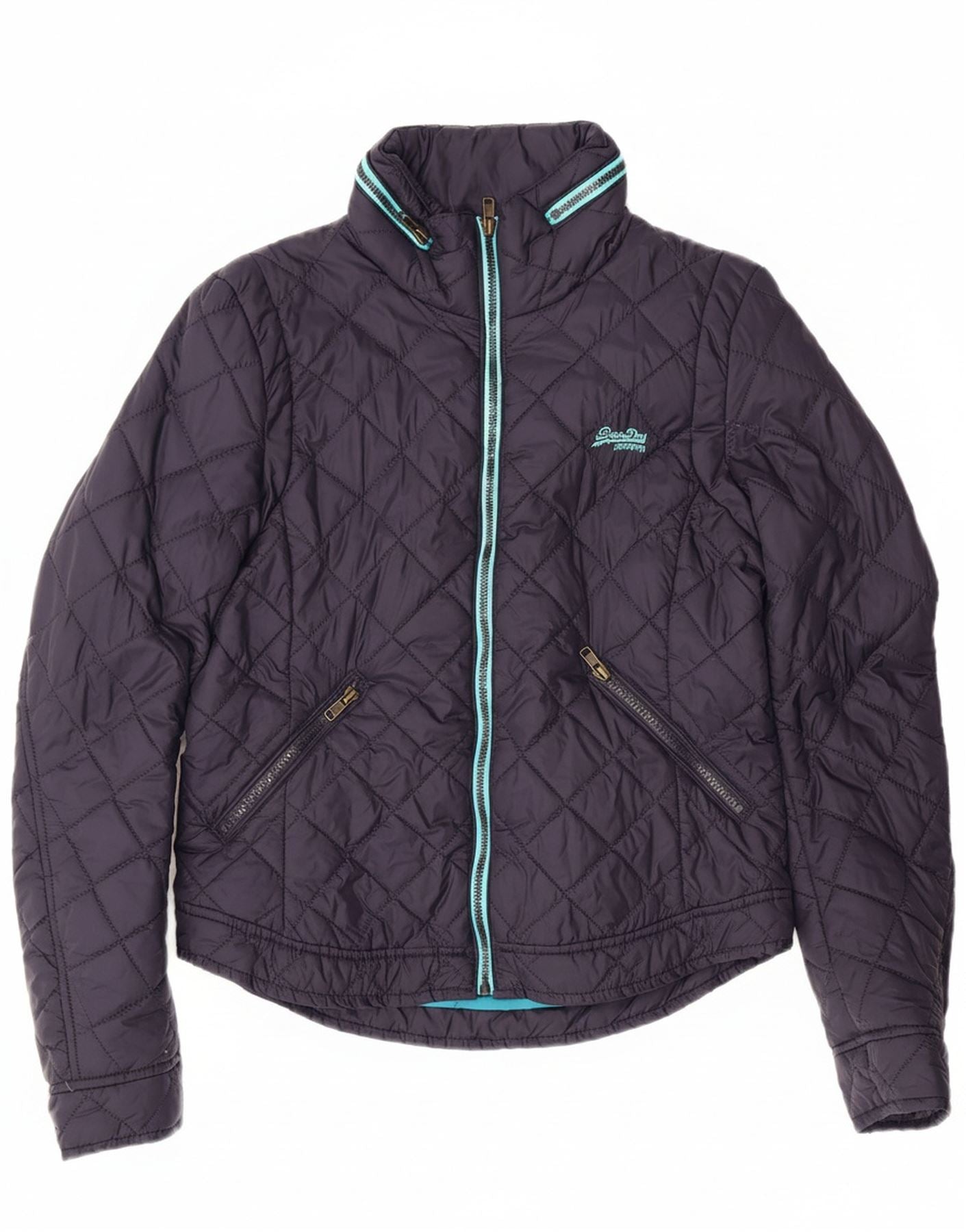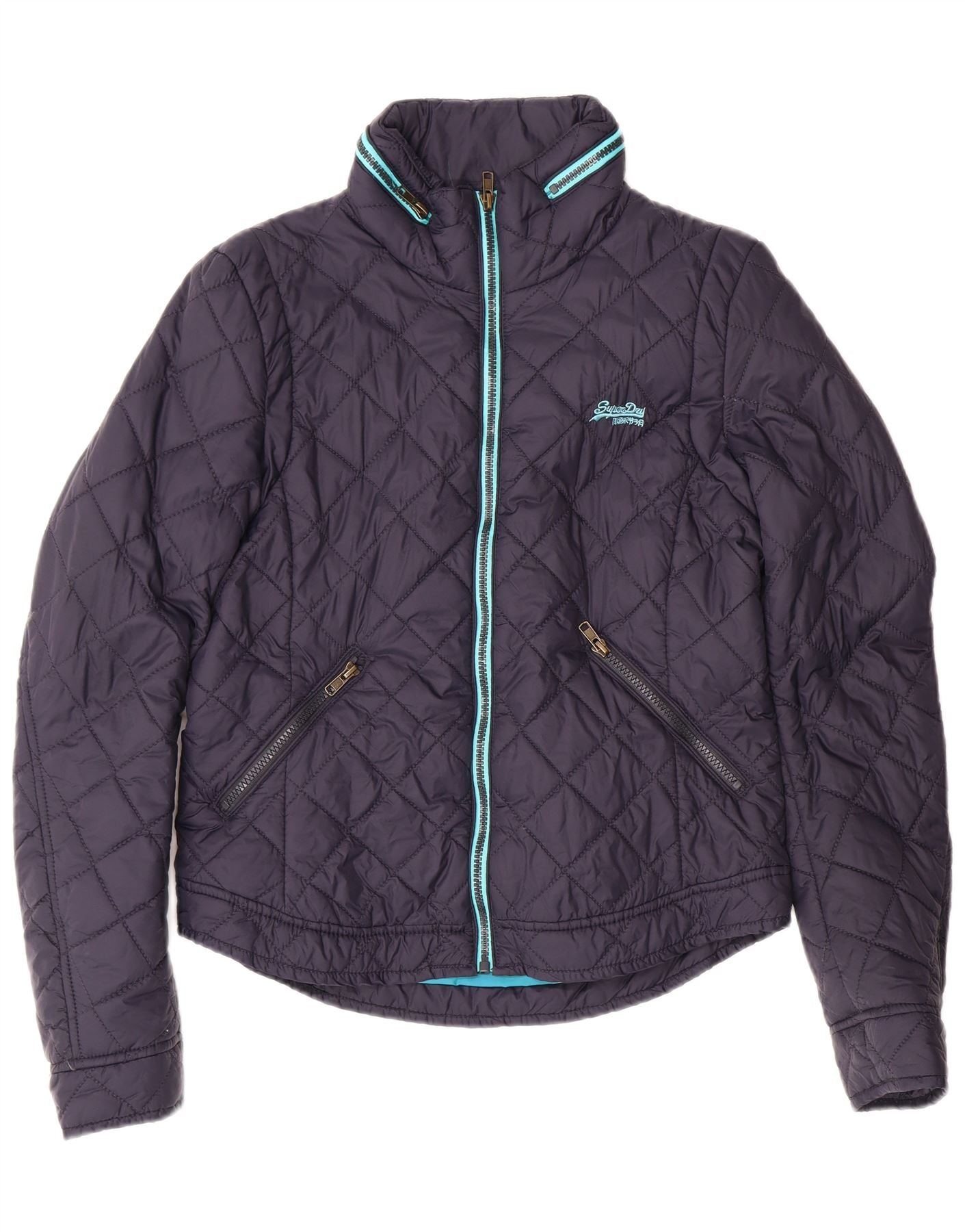 SUPERDRY Womens Quilted Jacket UK 14 Medium Navy Blue Nylon