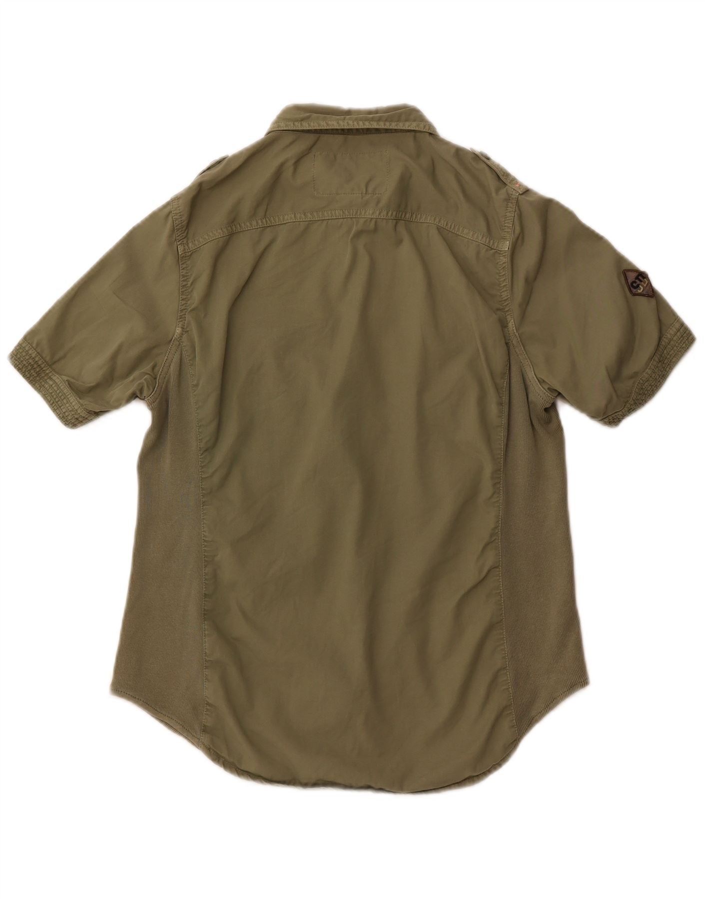 SUPERDRY Womens Short Sleeve Military Shirt UK 14 Large Khaki Cotton