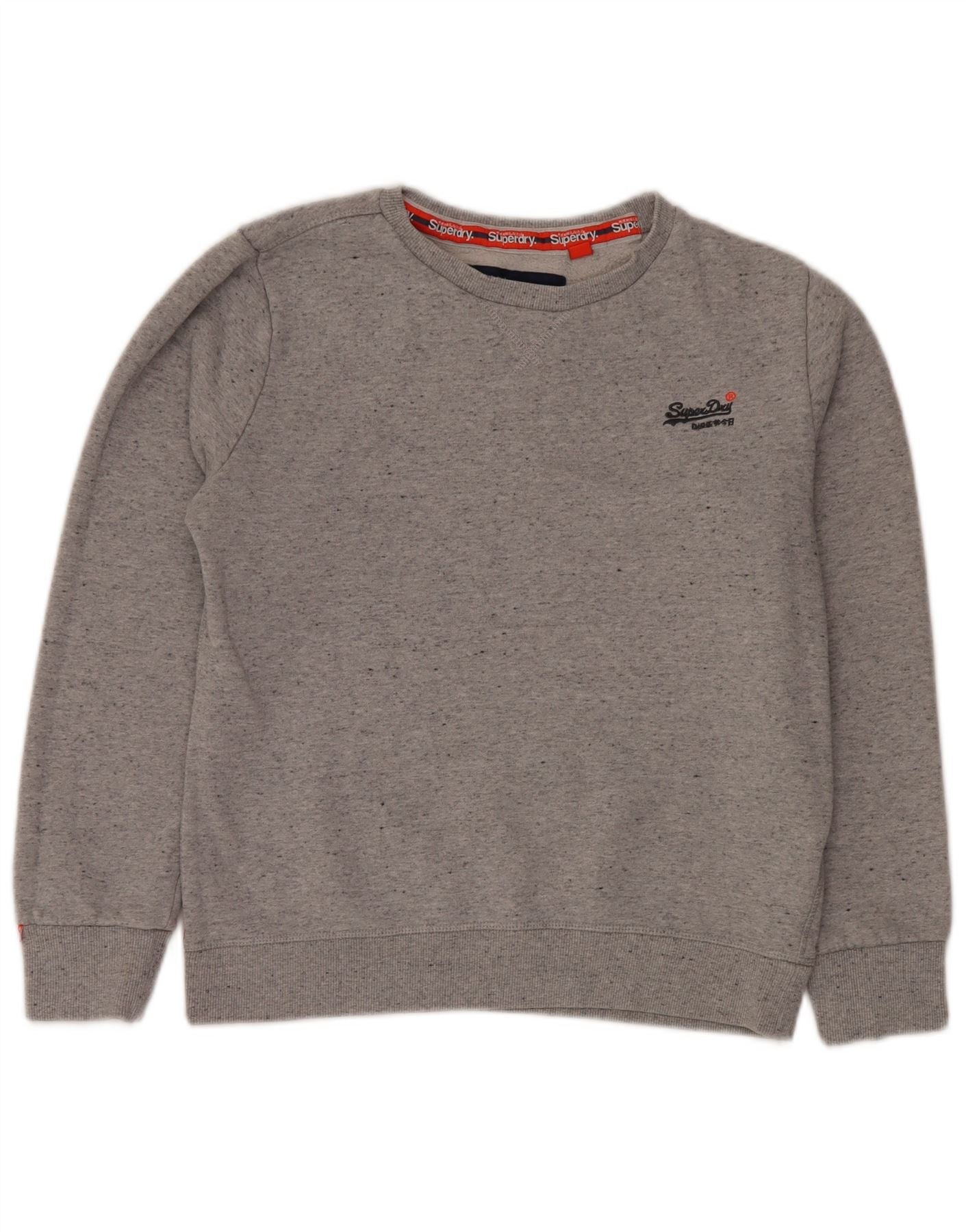 SUPERDRY Womens Sweatshirt Jumper UK 16 Large Grey Flecked Cotton