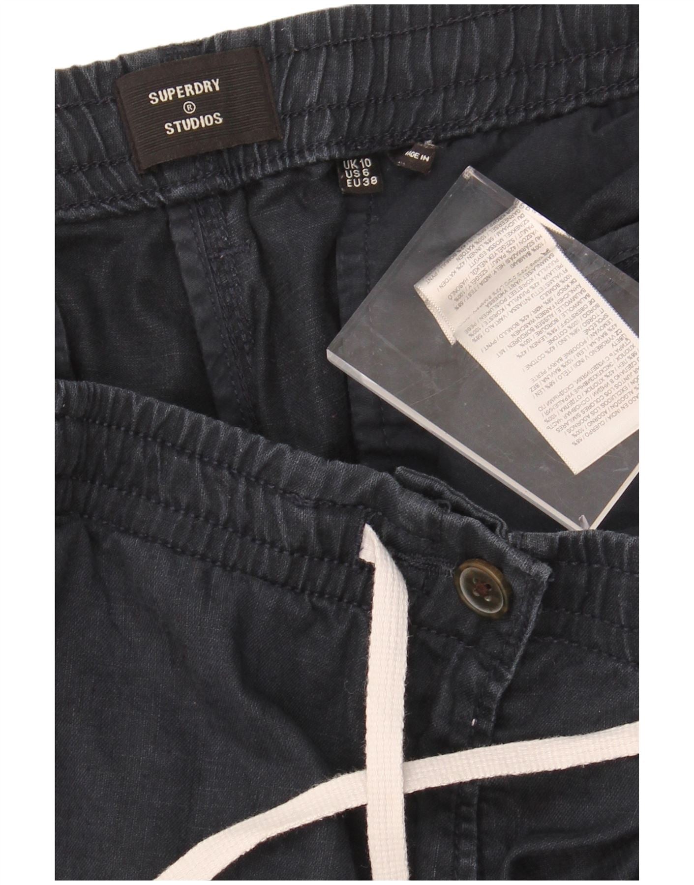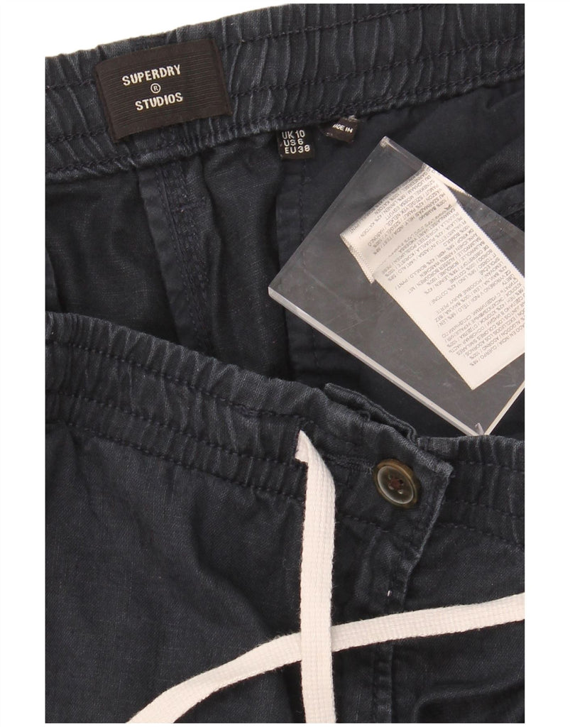 SUPERDRY Womens Tapered Chino Trousers UK 10 Small W32 L28 Navy Blue Linen