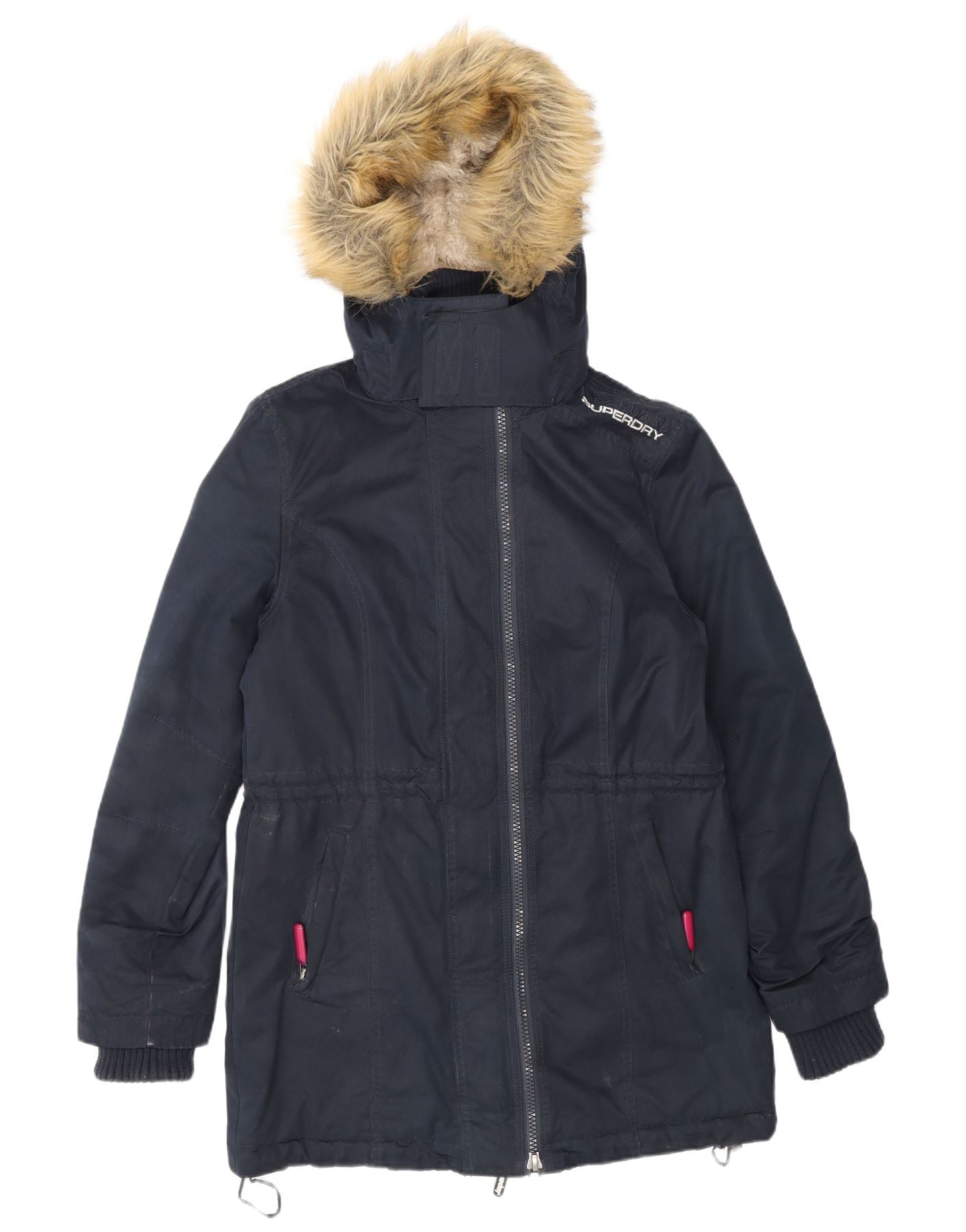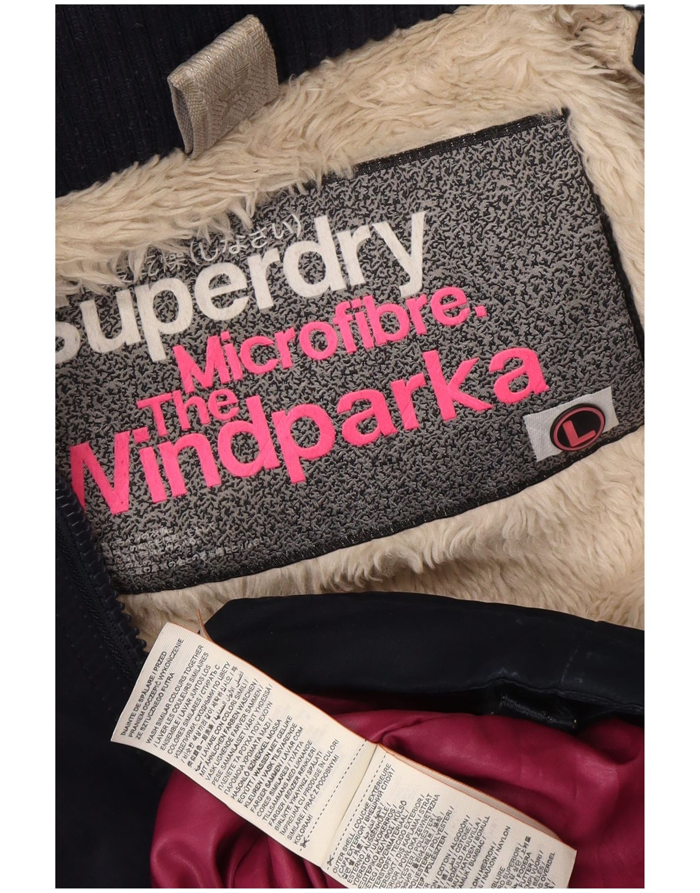 SUPERDRY Womens The windparka Graphic Parka Jacket UK 16 Large Navy Blue