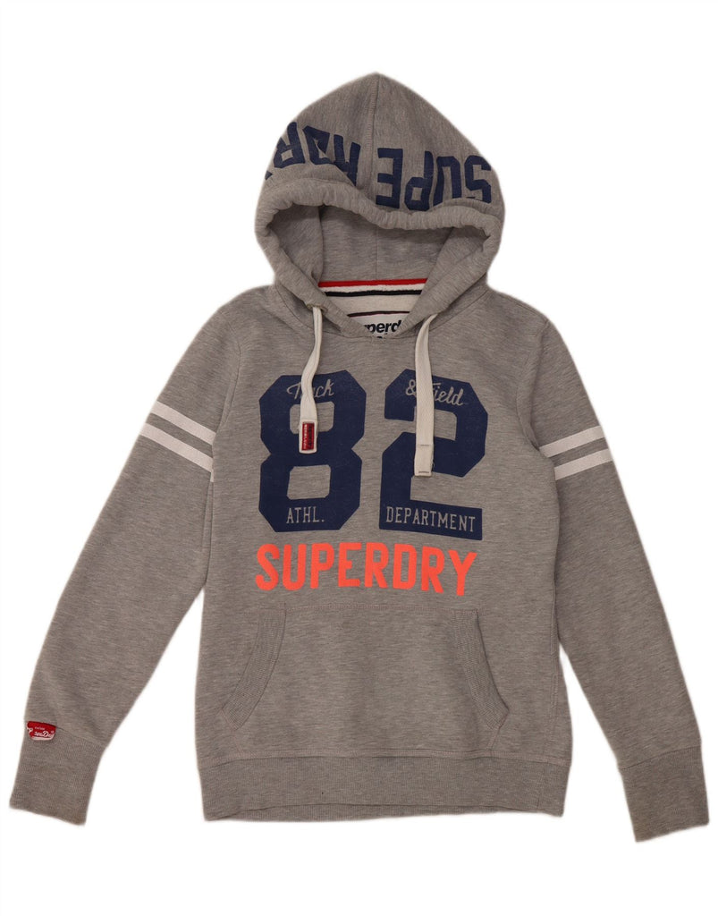 SUPERDRY Womens Track & Field Graphic Hoodie Jumper UK 14 Medium Grey