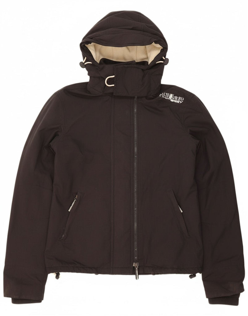 SUPERDRY Womens Windcheater Hooded Windbreaker Jacket UK 10 Small Black