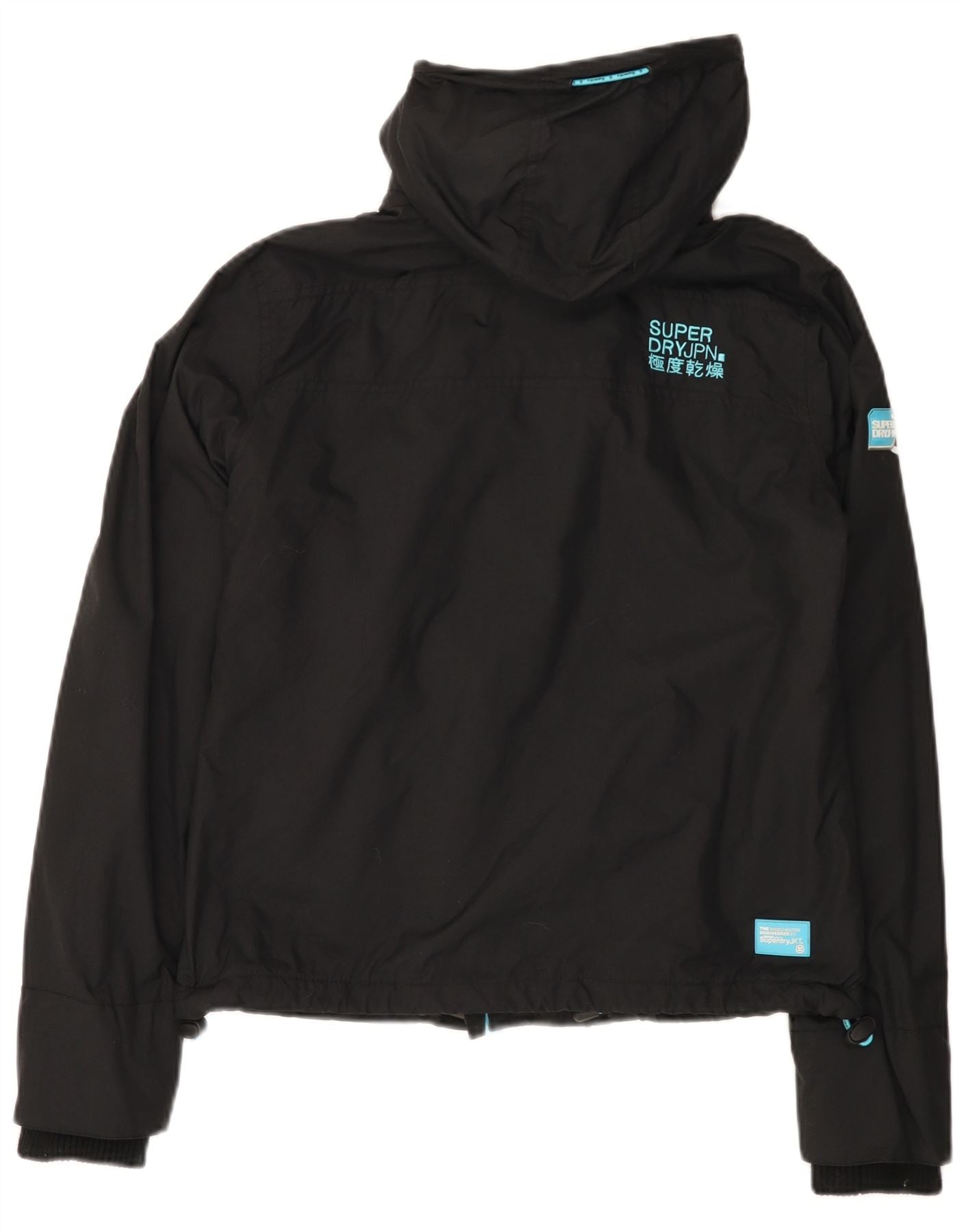 SUPERDRY Womens Windcheater Hooded Windbreaker Jacket UK 12 Medium Black