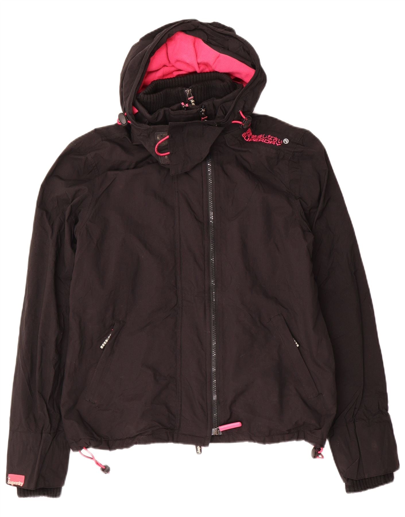 SUPERDRY Womens Windcheater Hooded Windbreaker Jacket UK 16 Large Black