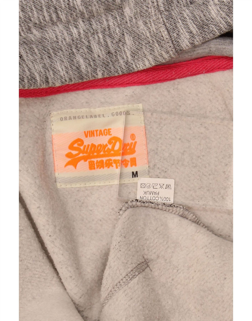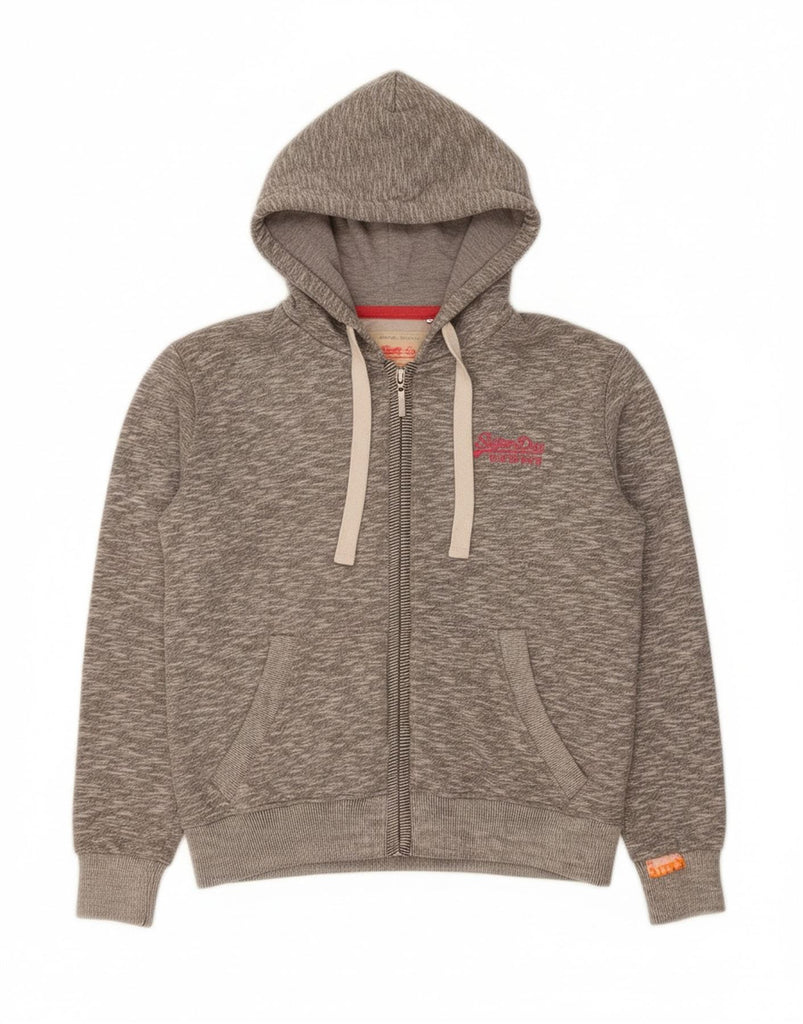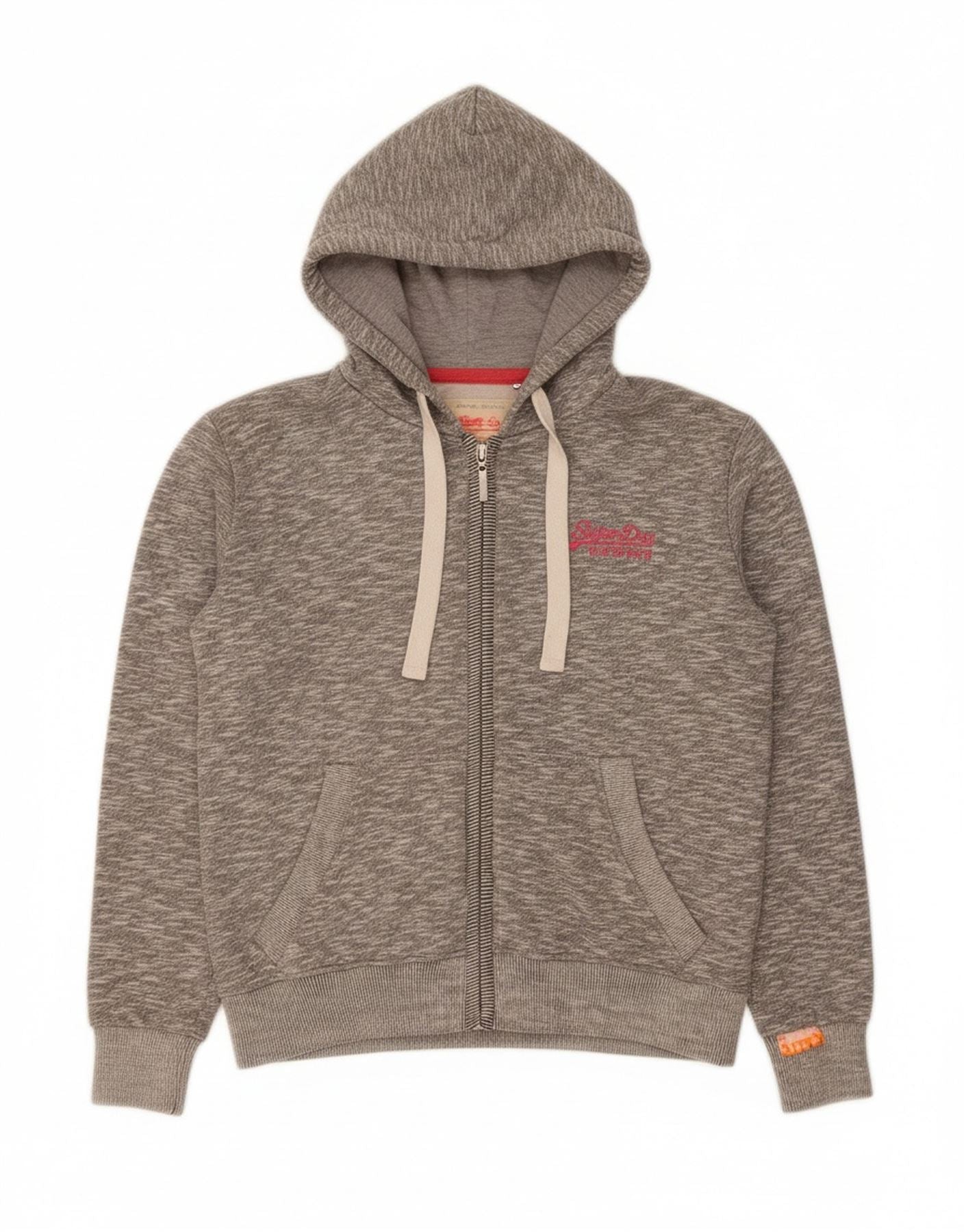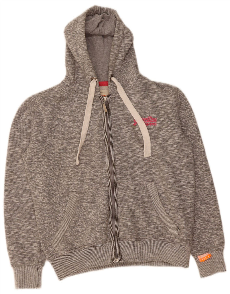 SUPERDRY Womens Zip Hoodie Sweater UK 14 Medium Grey Flecked Cotton