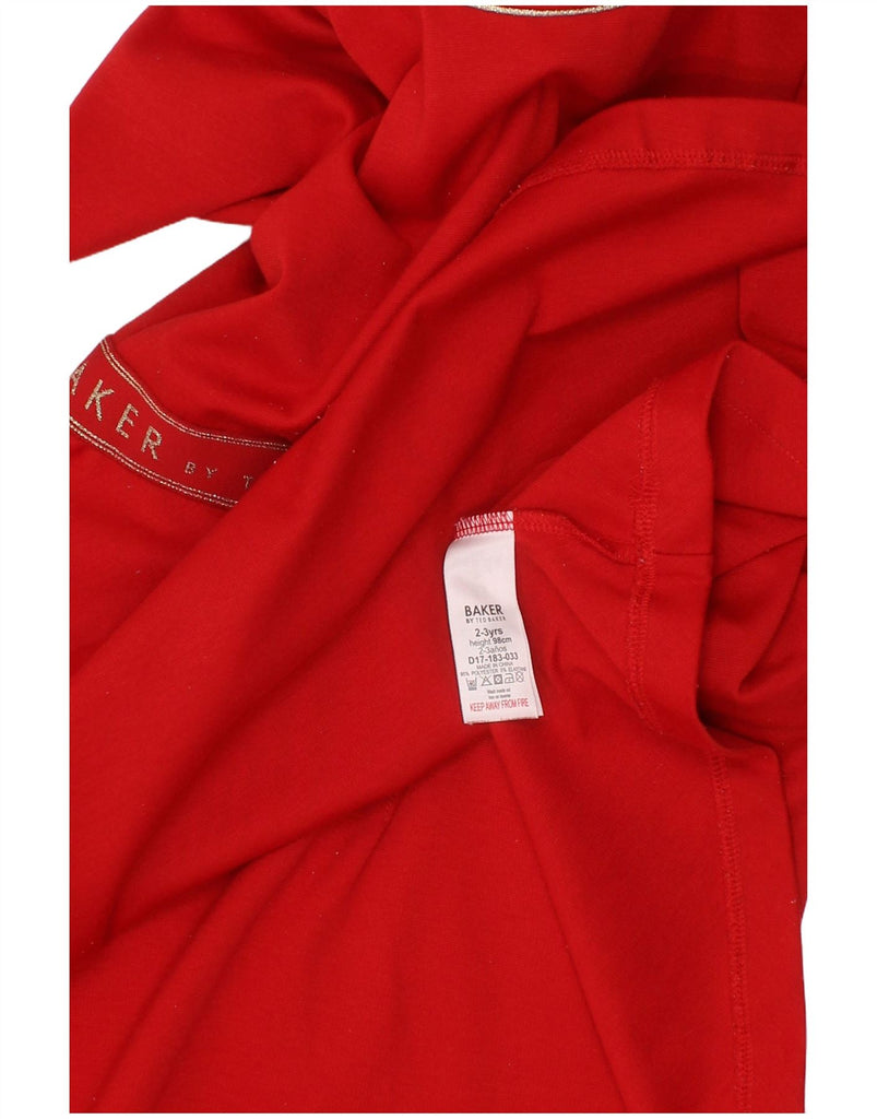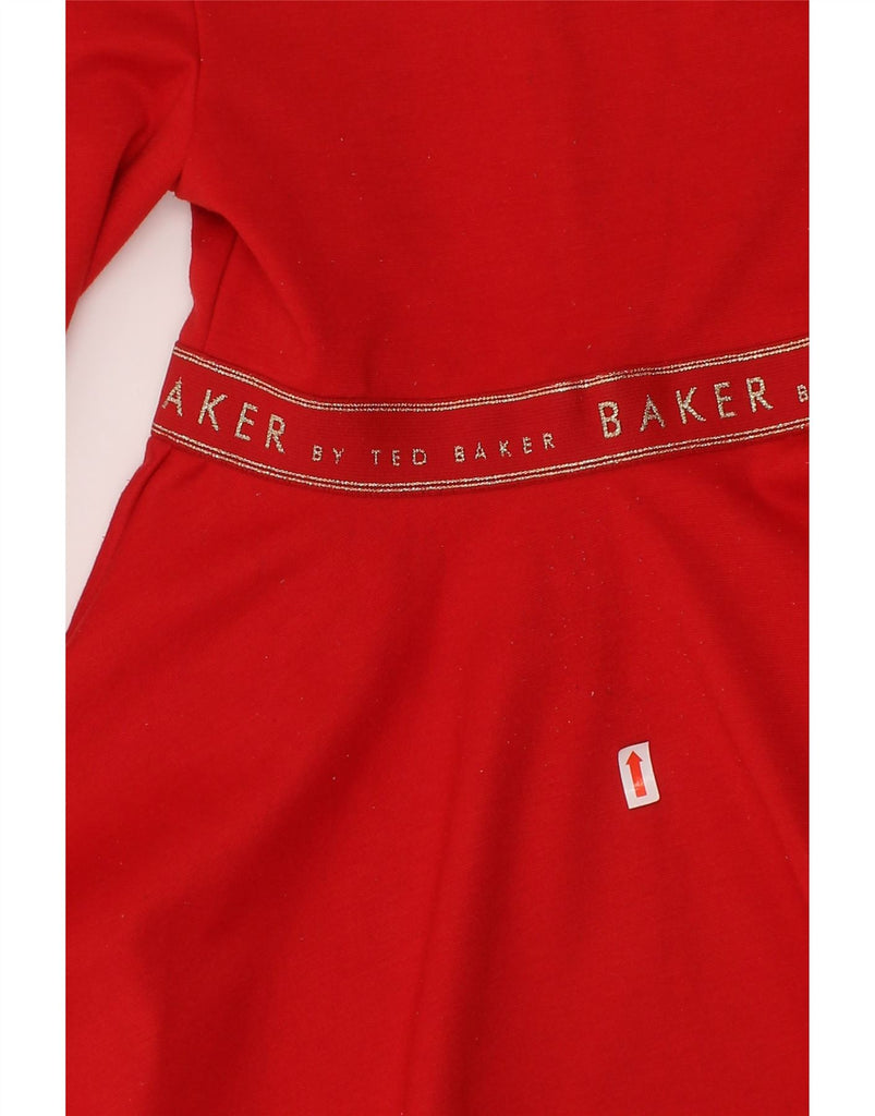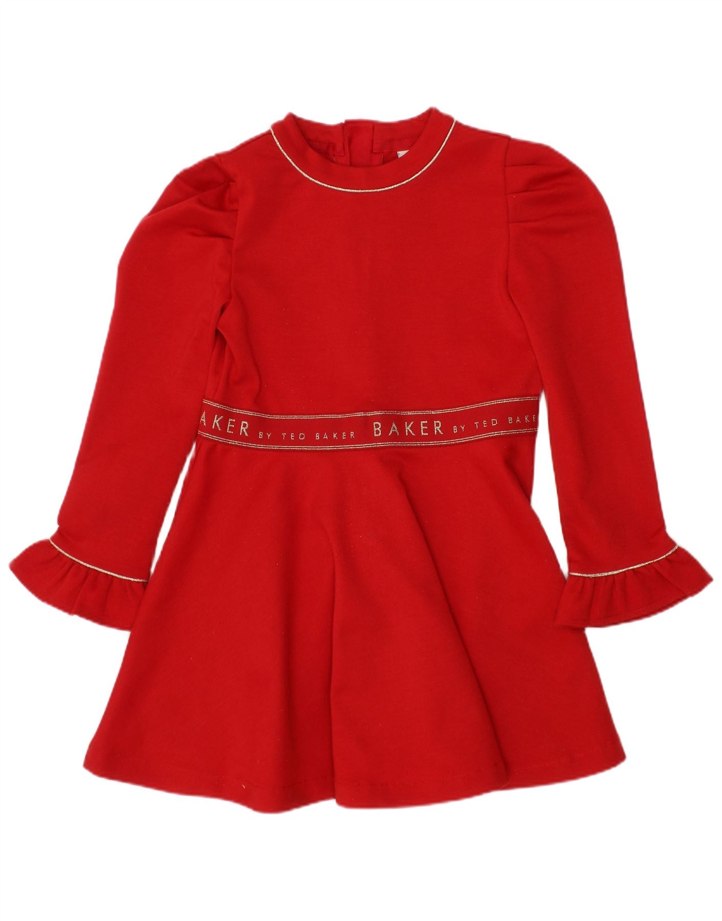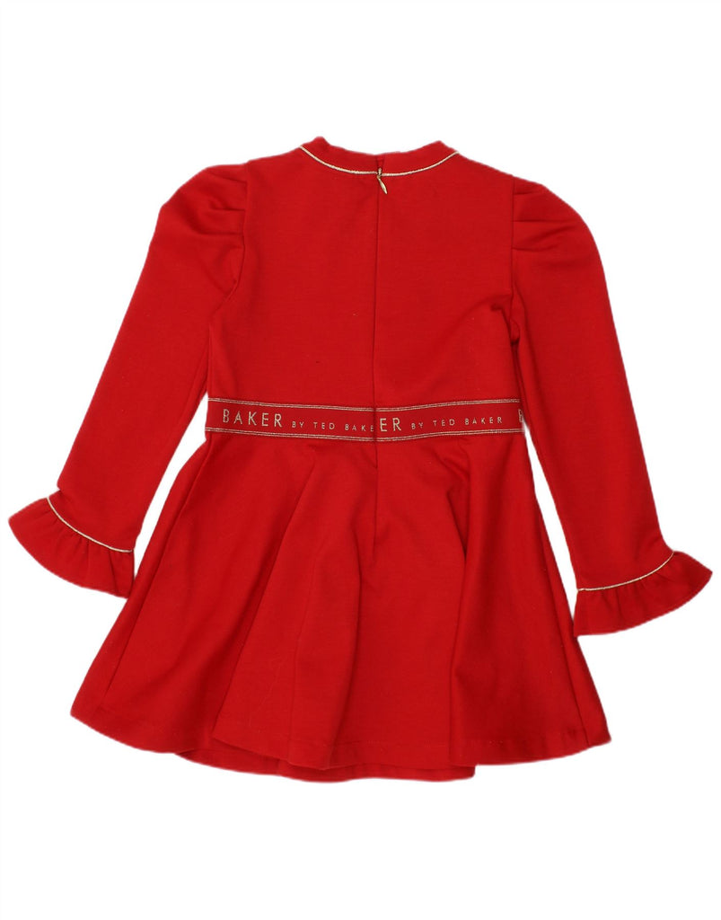 TED BAKER Girls Graphic Long Sleeve A-Line Dress 2-3 Years Red Polyester