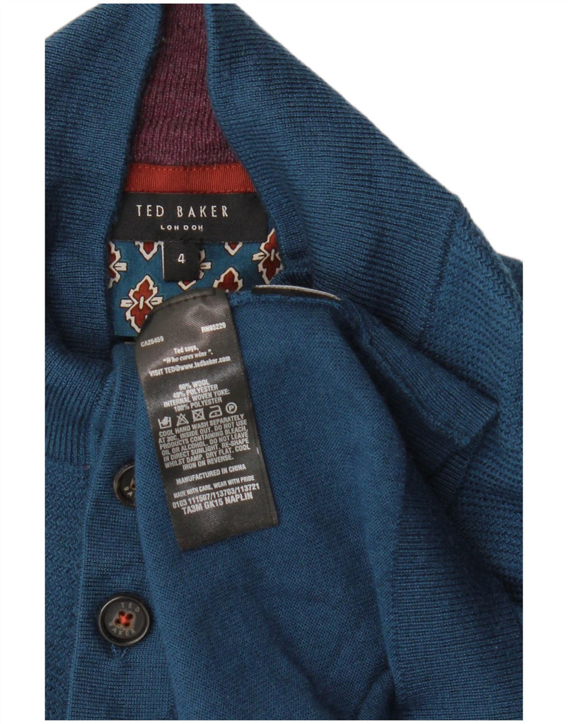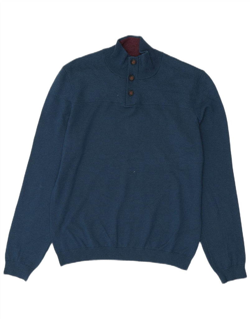 TED BAKER Mens Button Neck Jumper Sweater Size 4 Large Blue Wool