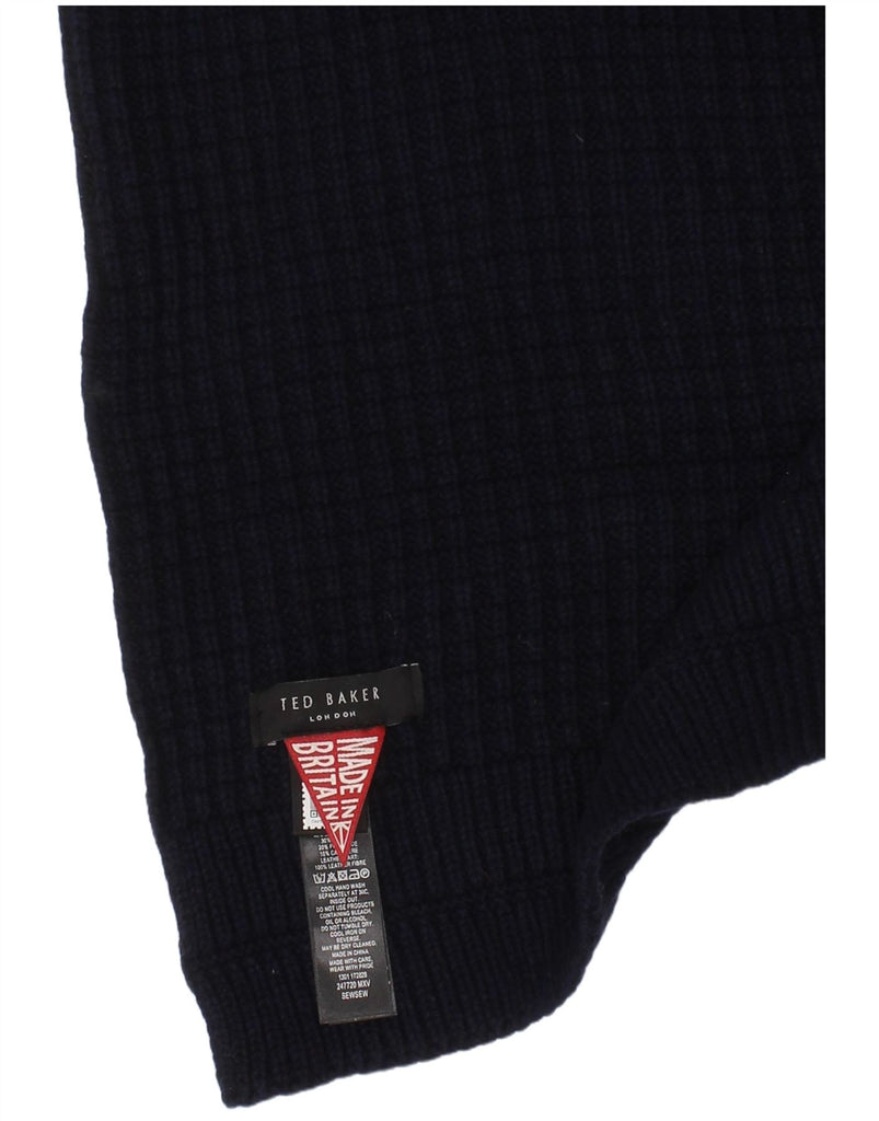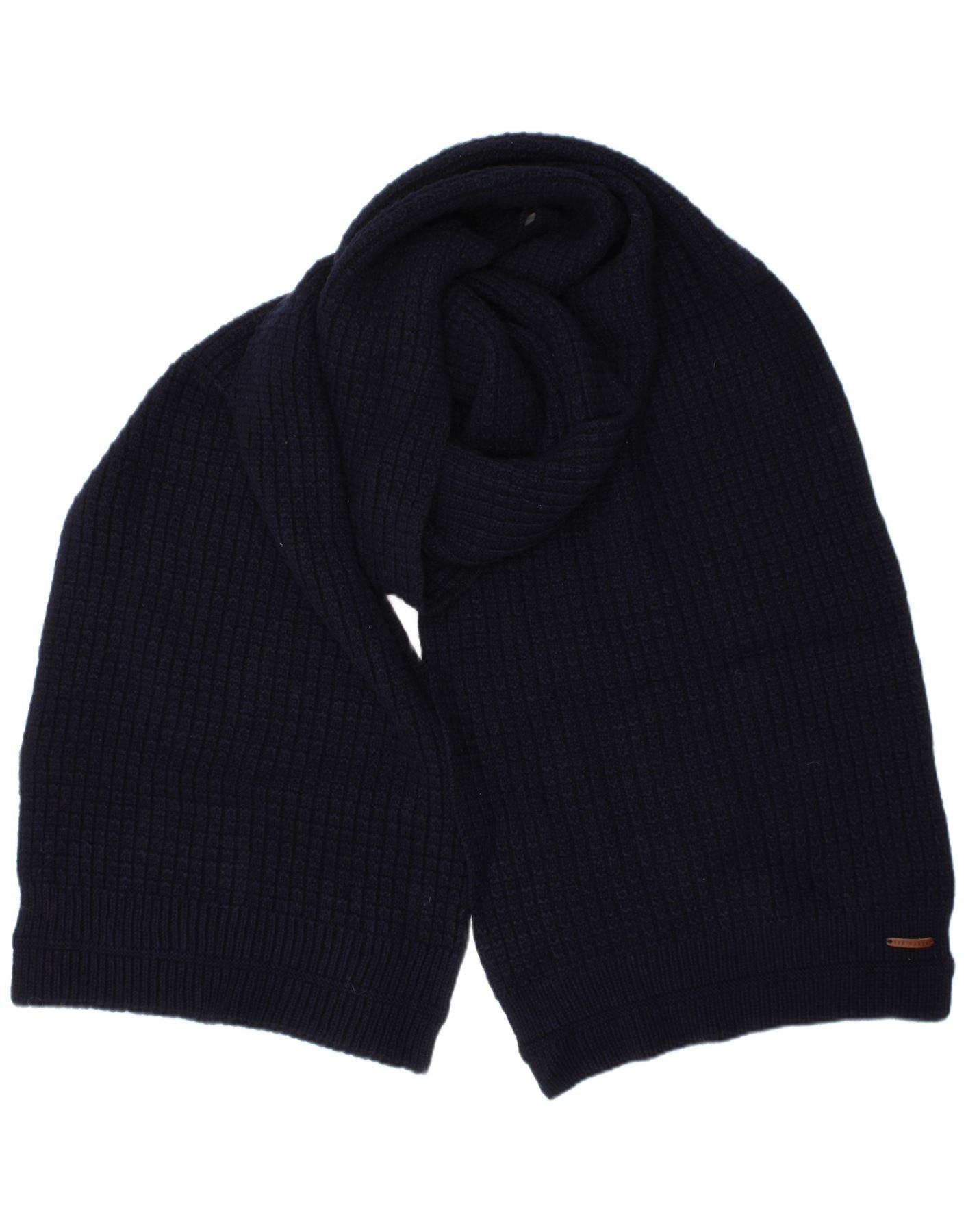 TED BAKER Mens Knit Rectangle Scarf One Size Navy Blue Merino Wool Classic