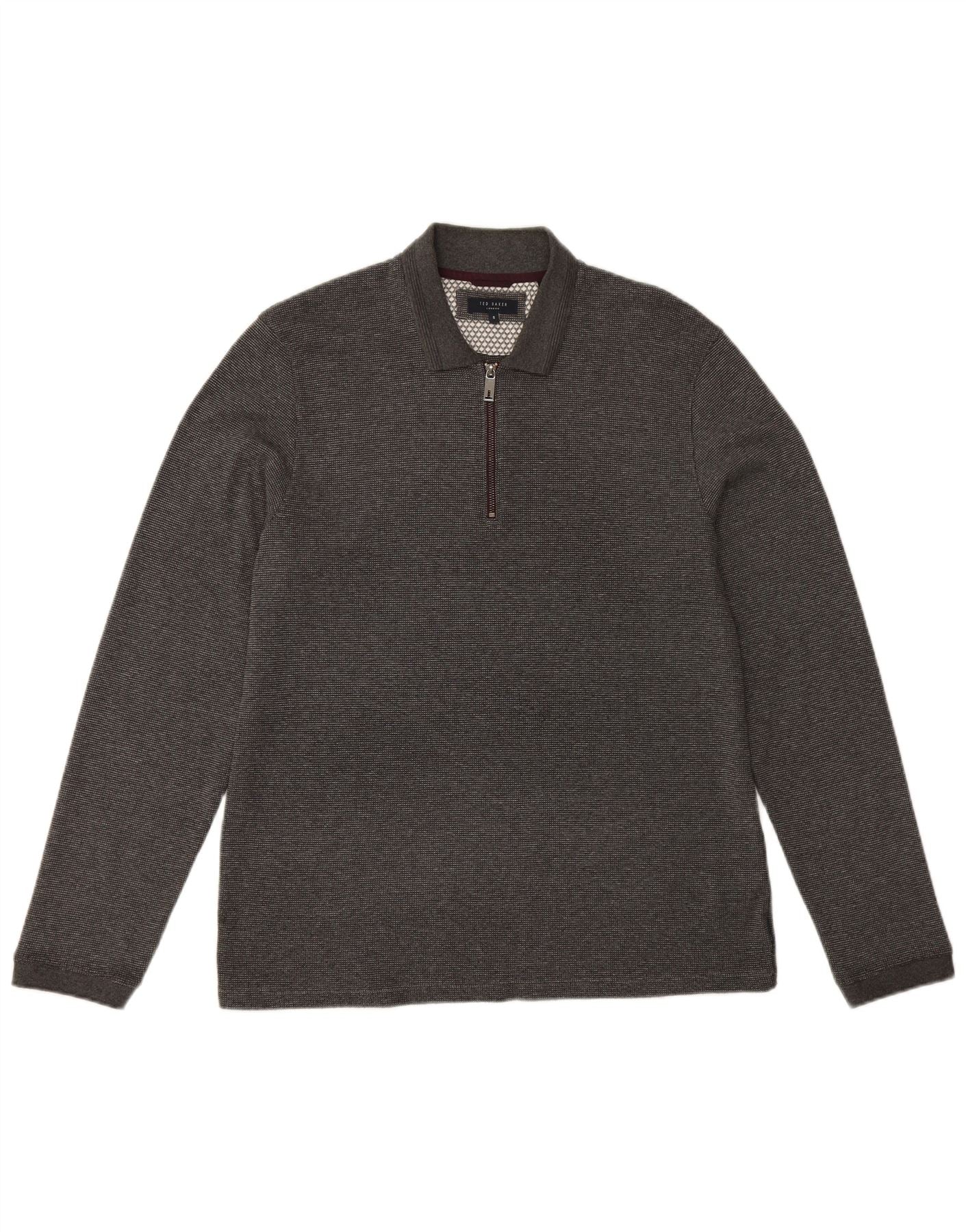 TED BAKER Mens London Long Sleeve Polo Shirt Size 5 XL Grey Cotton