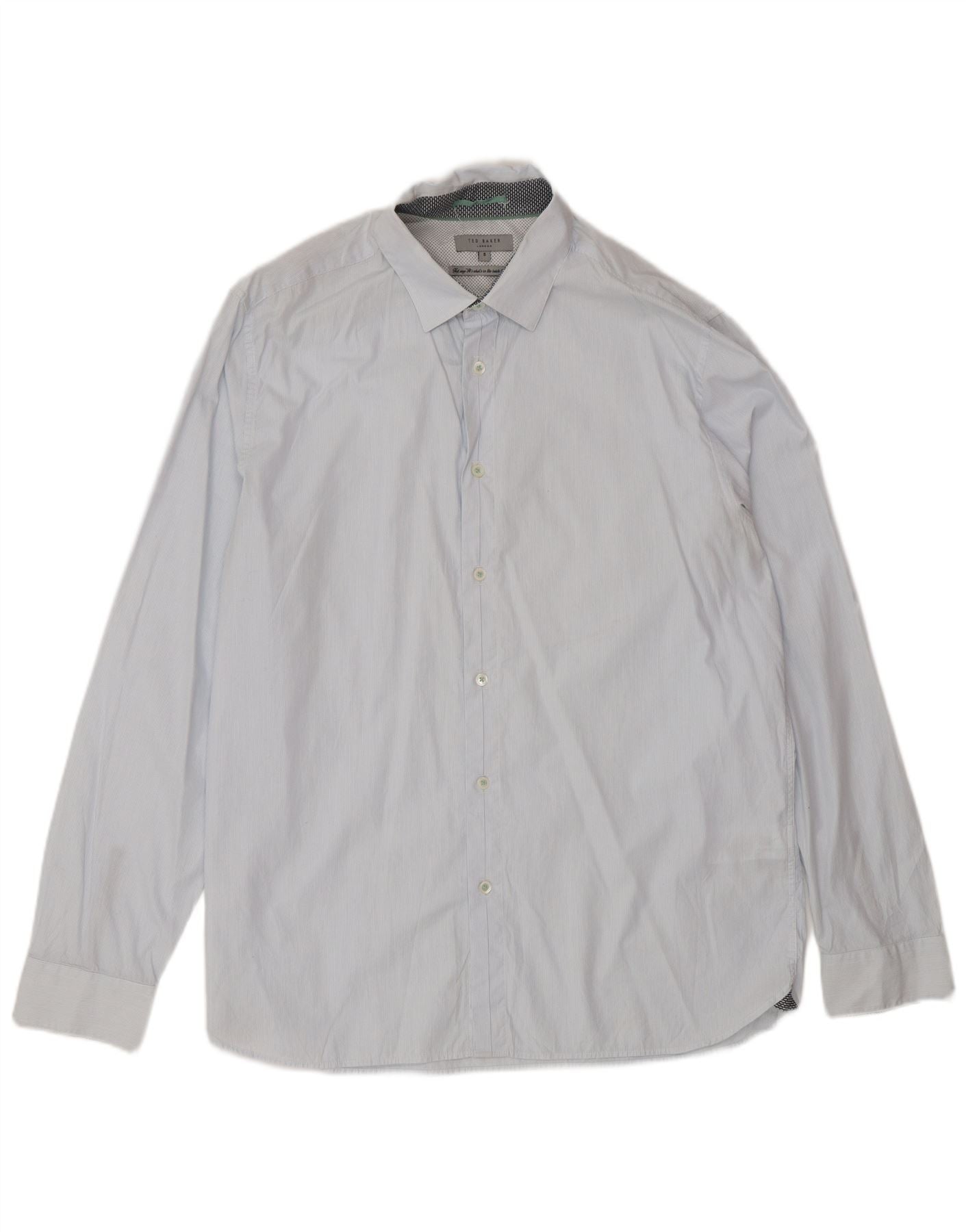 Ted Baker Mens Shirt Size 5 XL Blue Pinstripe Cotton