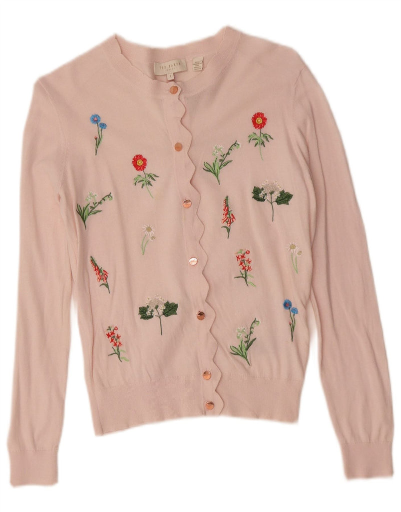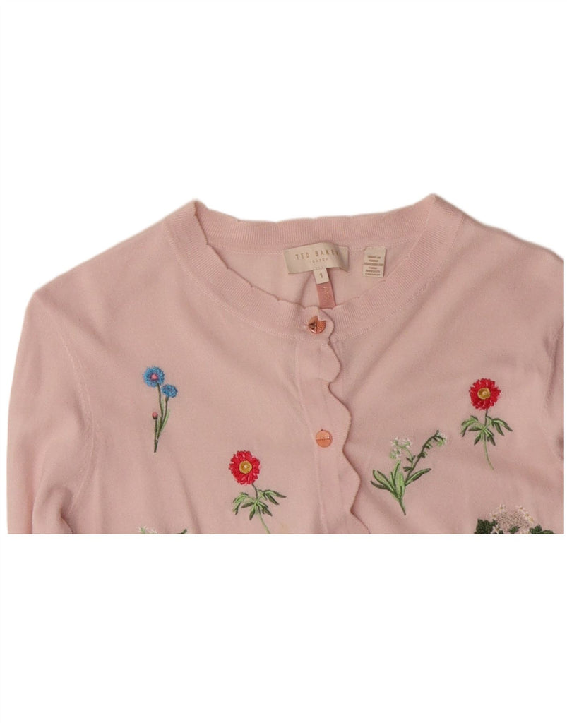 TED BAKER Womens Cardigan Sweater Size 1 XS Pink Floral Cotton