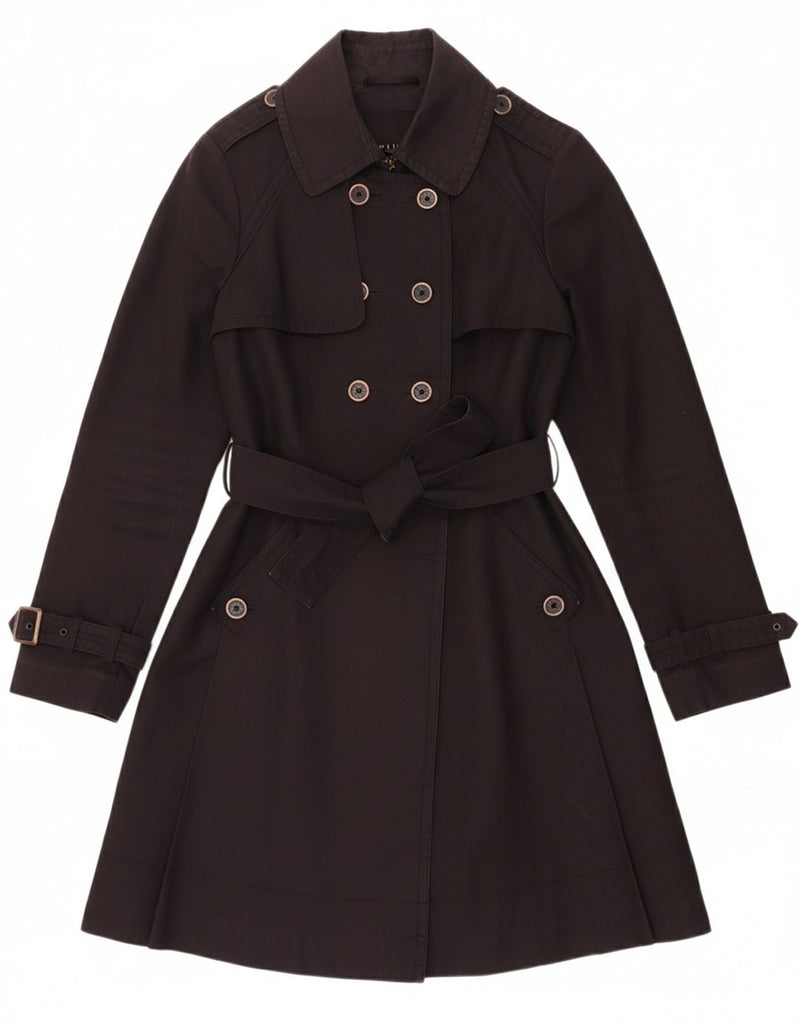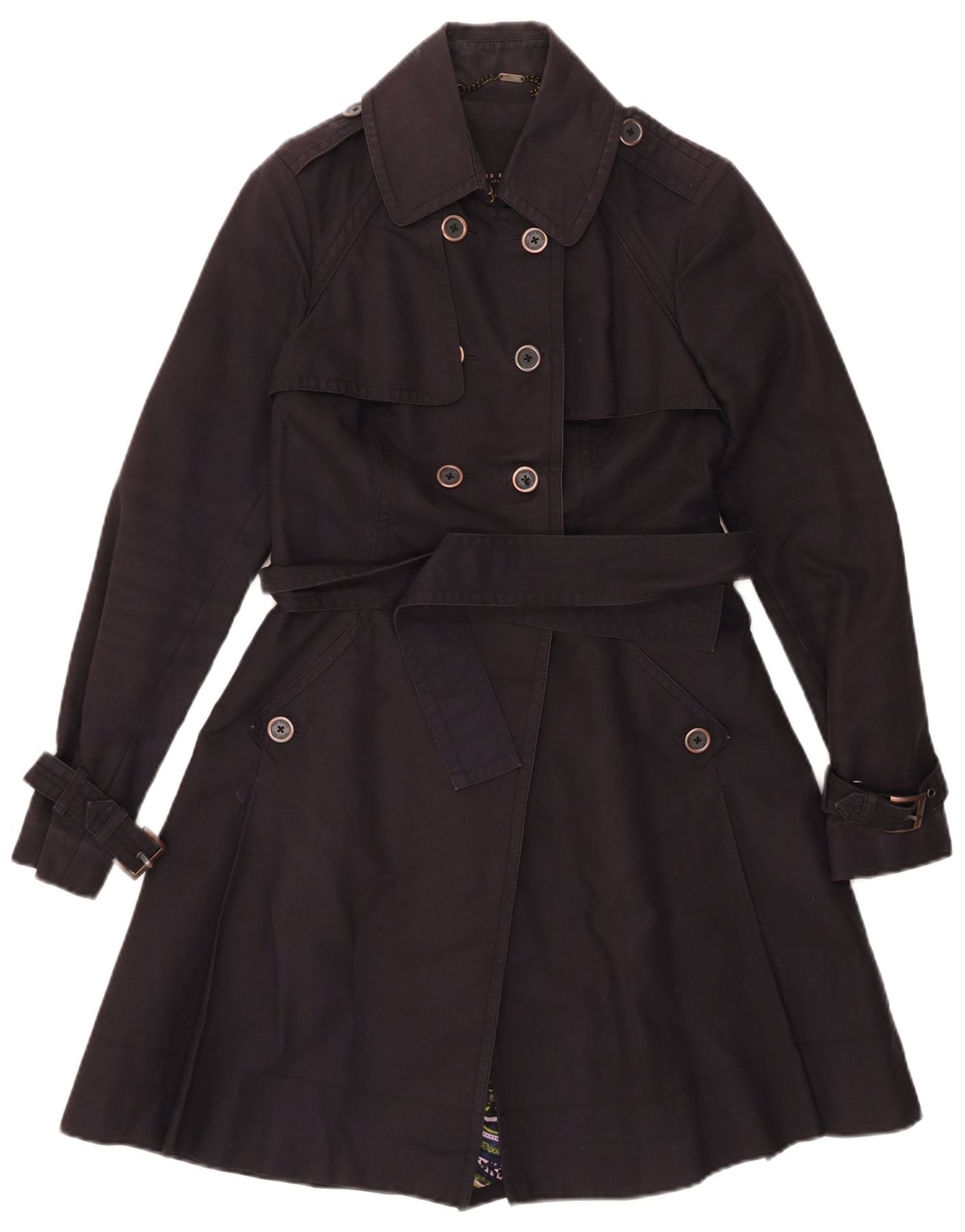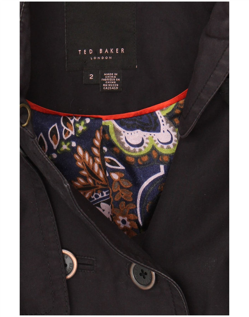 TED BAKER Womens Double Breasted Trench Coat Size 2 Small Navy Blue Cotton
