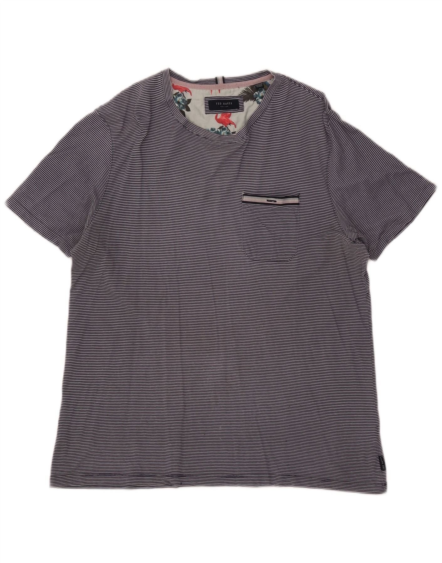 TED BAKER Womens T-Shirt Top Size 4 Large Navy Blue Pinstripe Cotton