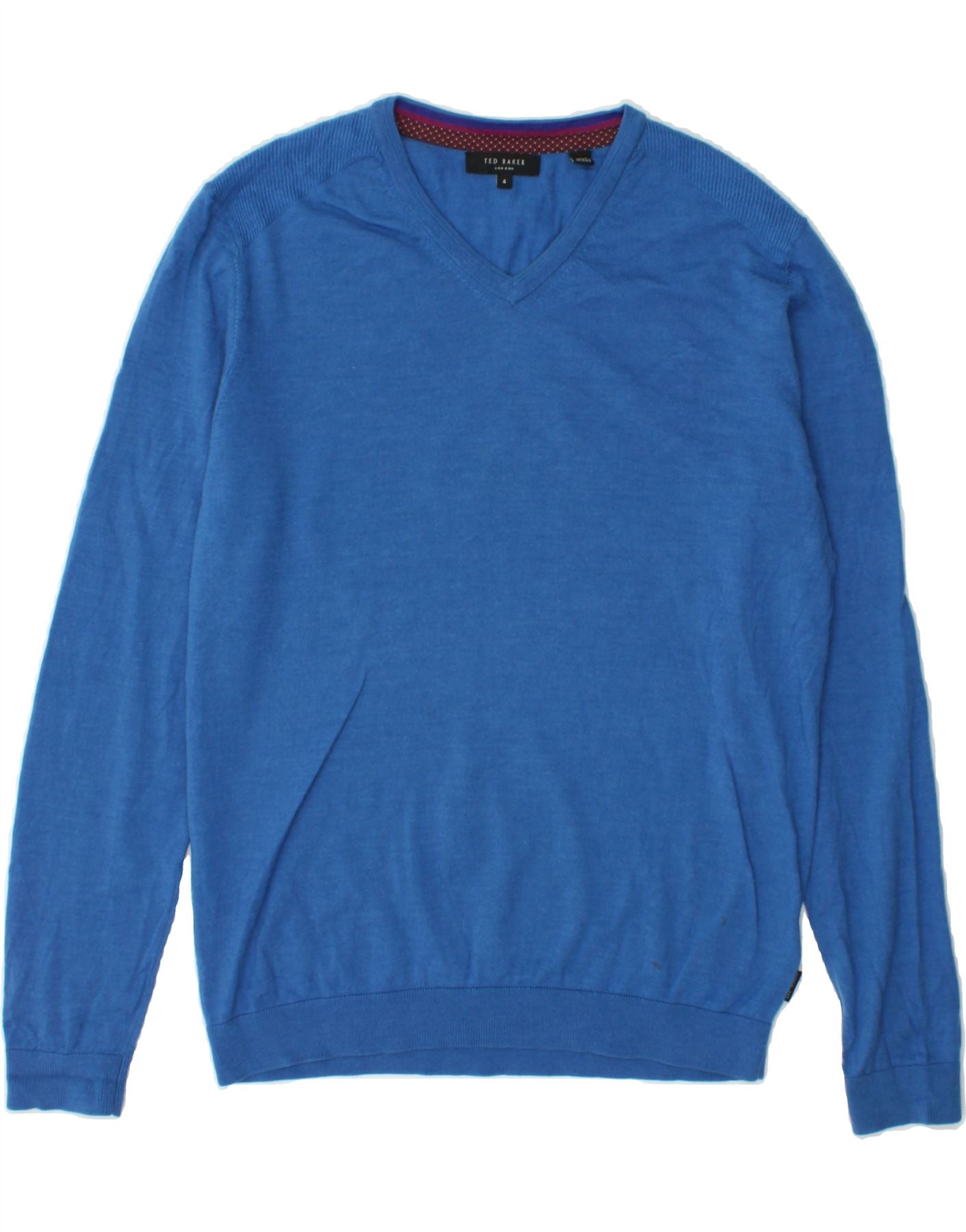 TED BAKER Womens V-Neck Jumper Sweater Size 4 Large Blue Merino Wool
