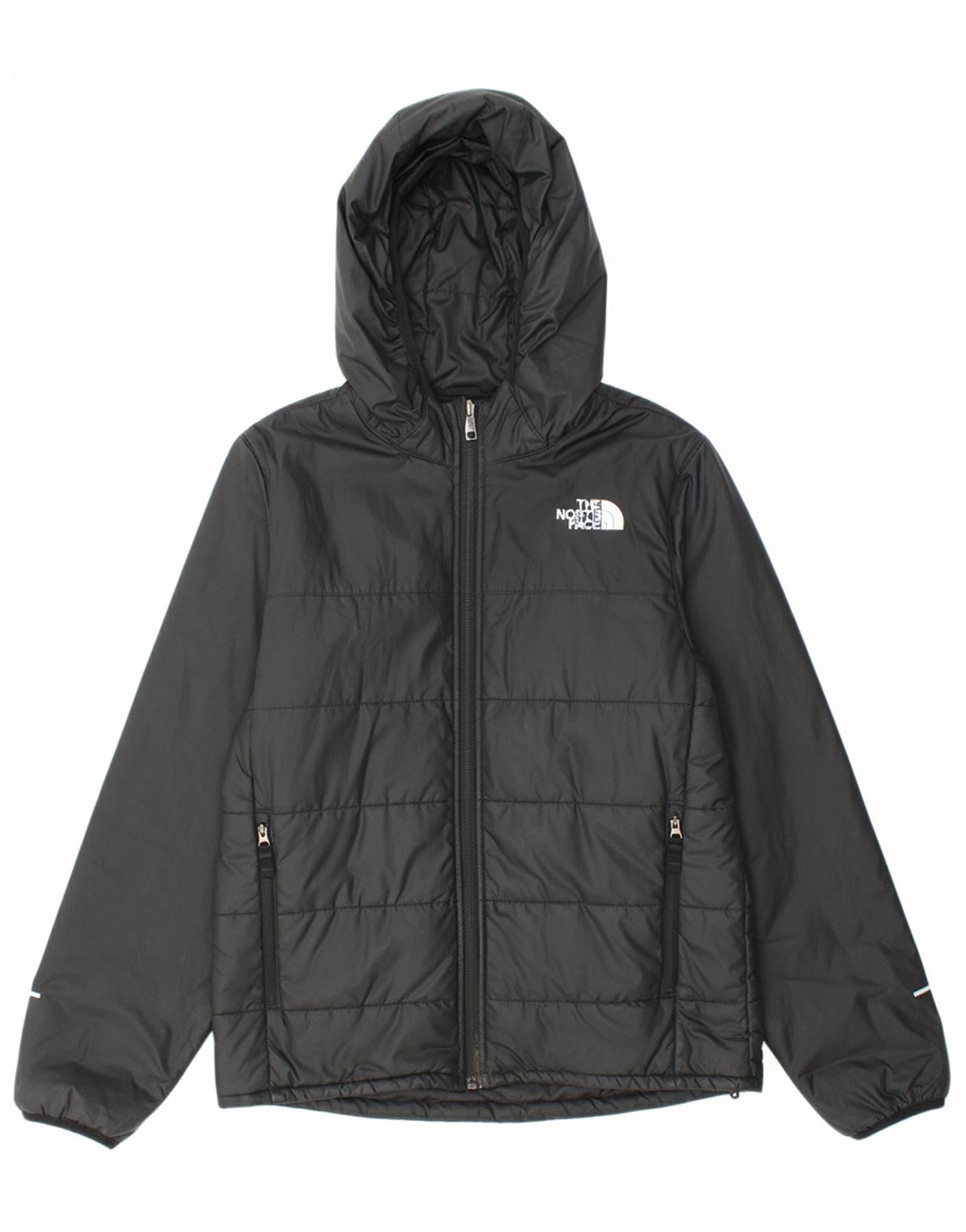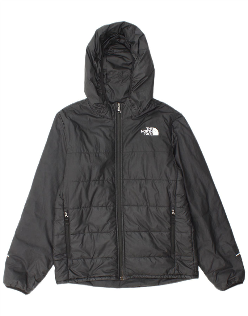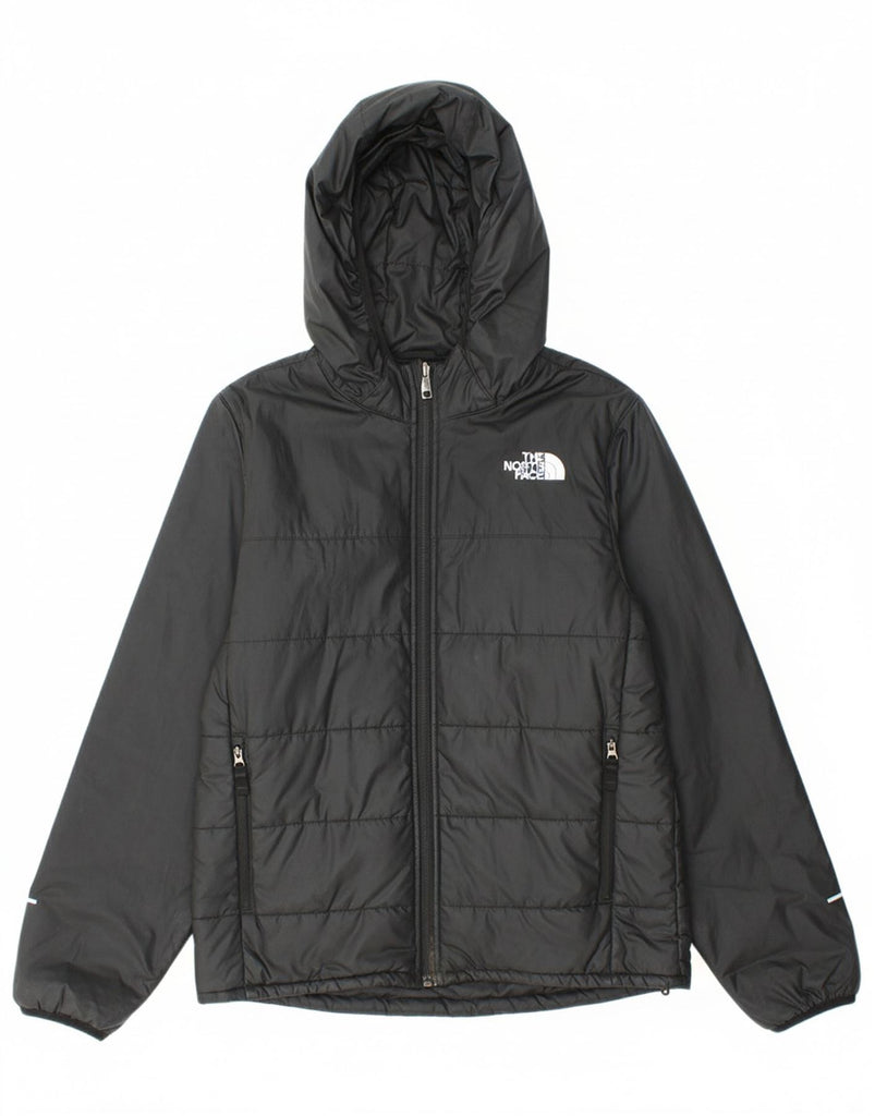 THE NORTH FACE Boys Hooded Padded Jacket 14-15 Years XL Black Polyester