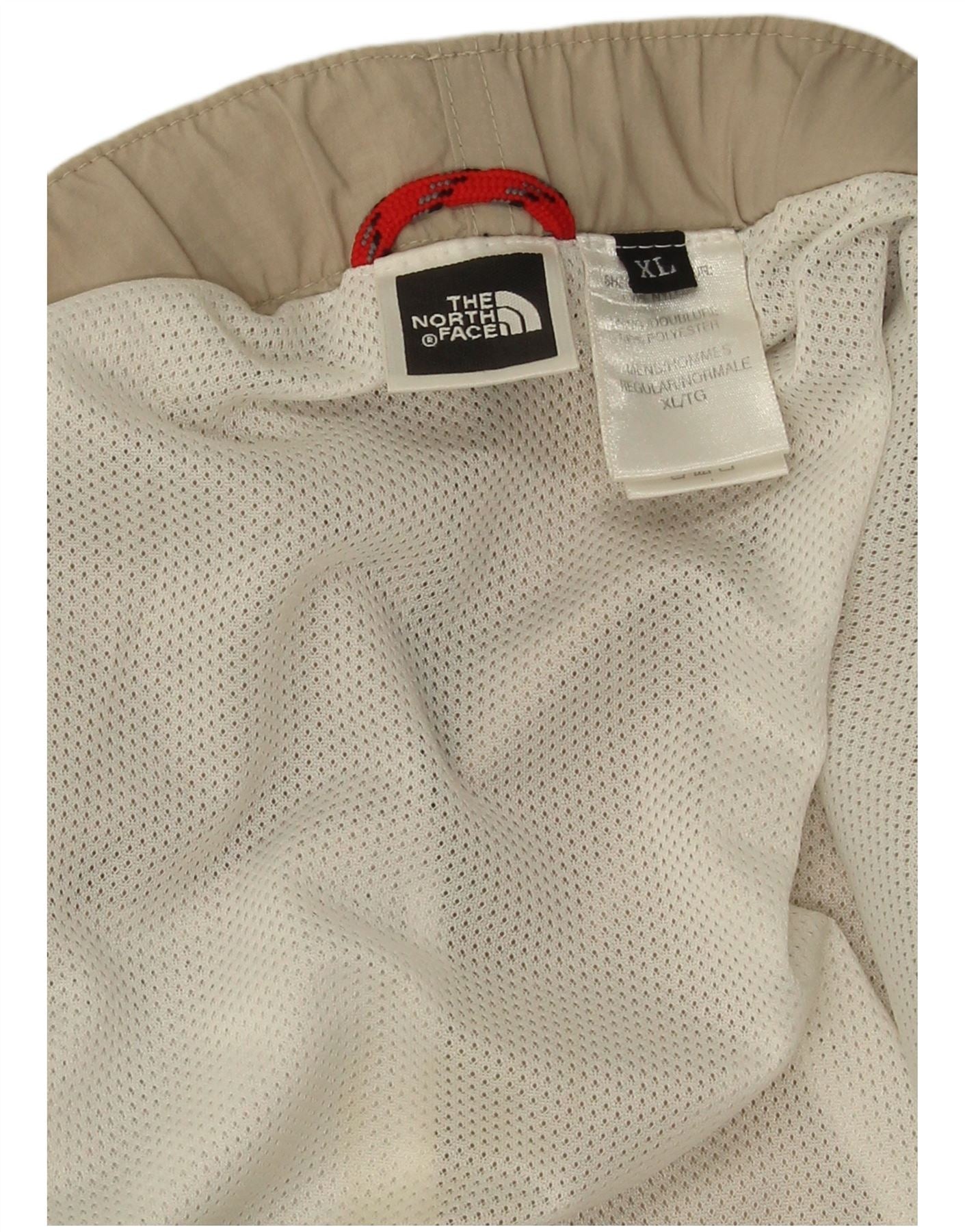 - AI Description: This The North Face mens Cargo Shorts are crafted from lightweight woven nylon in a versatile beige hue. They feature a comfortable elasticated waist with a pull-on drawstring closure. The regular fit ensures ease of movement. Multiple practical pockets provide utility, including a distinctive mesh pocket on the side. A subtle brand logo adds a signature touch, perfect for sports and casual wear.
