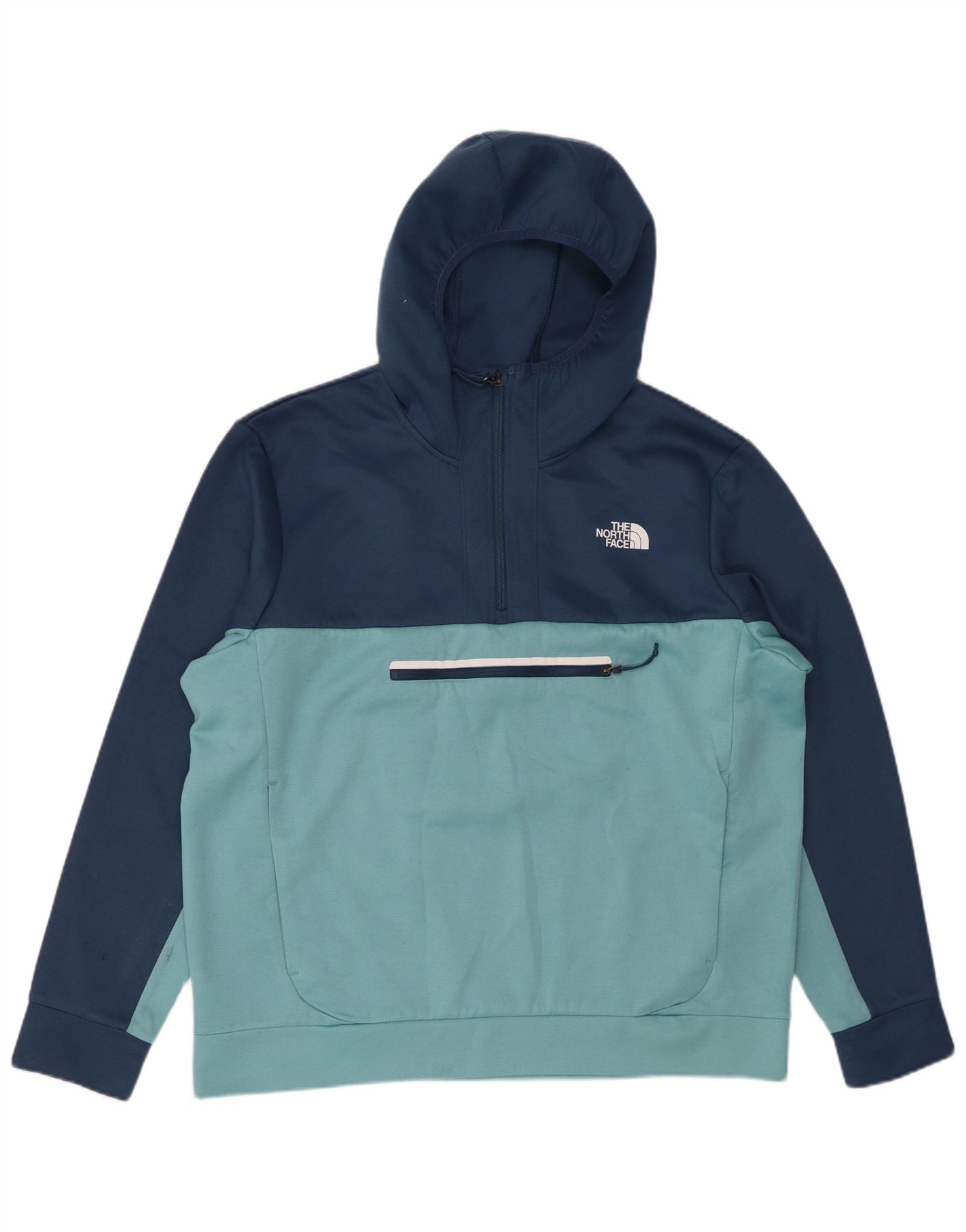 THE NORTH FACE Mens Zip Neck Hoodie Jumper XL Navy Blue Colourblock